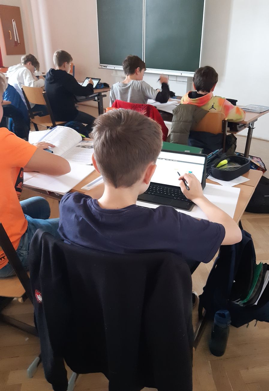 Um die digitale Grundbildung entsprechend praktisch umsetzen zu können, wurden alle Schülerinnen und Schüler der Unterstufe mit einem eigenen Tablet (Samsung Galaxy Tab S6 Lite SM-P610) ausgestattet.