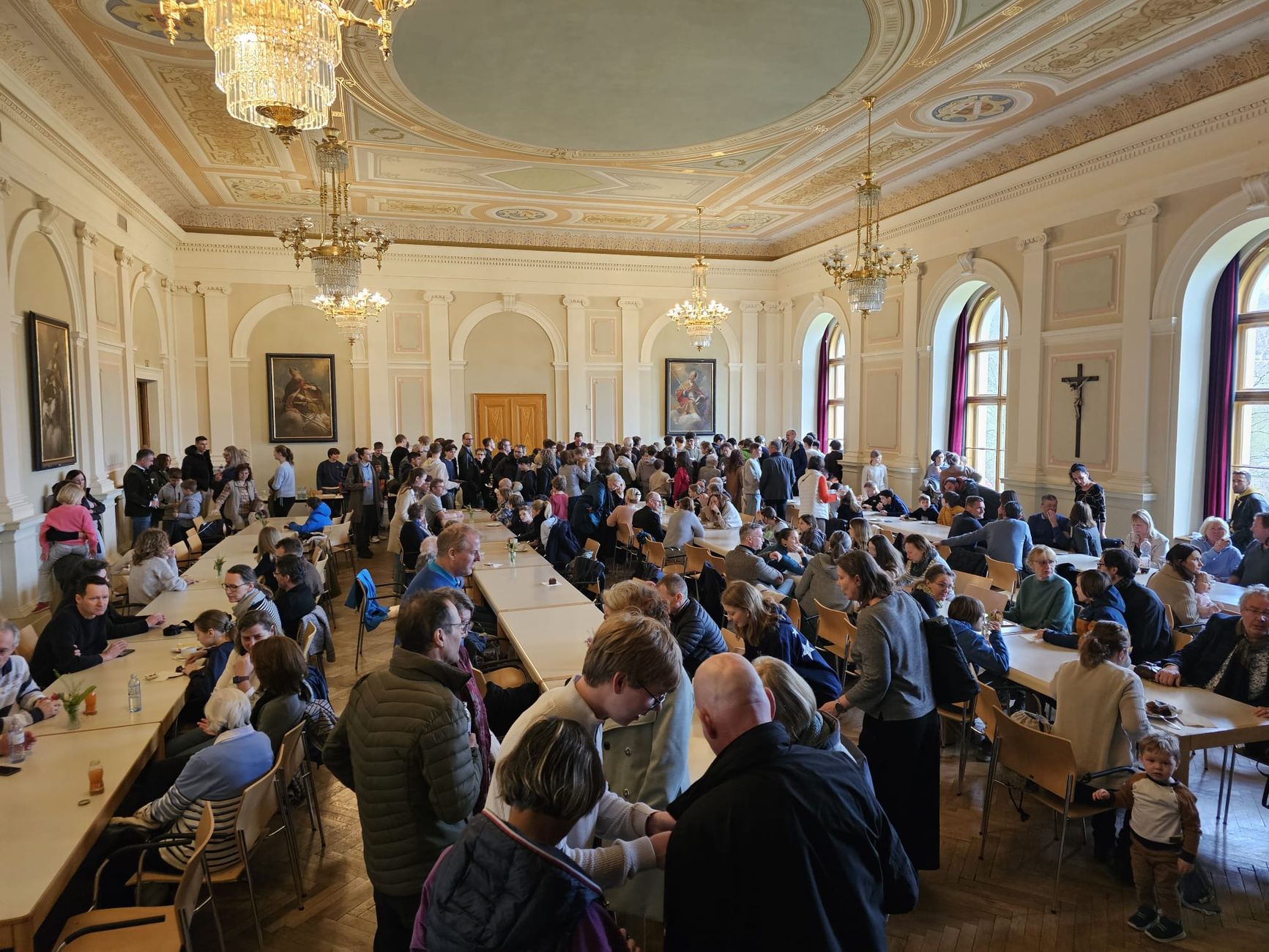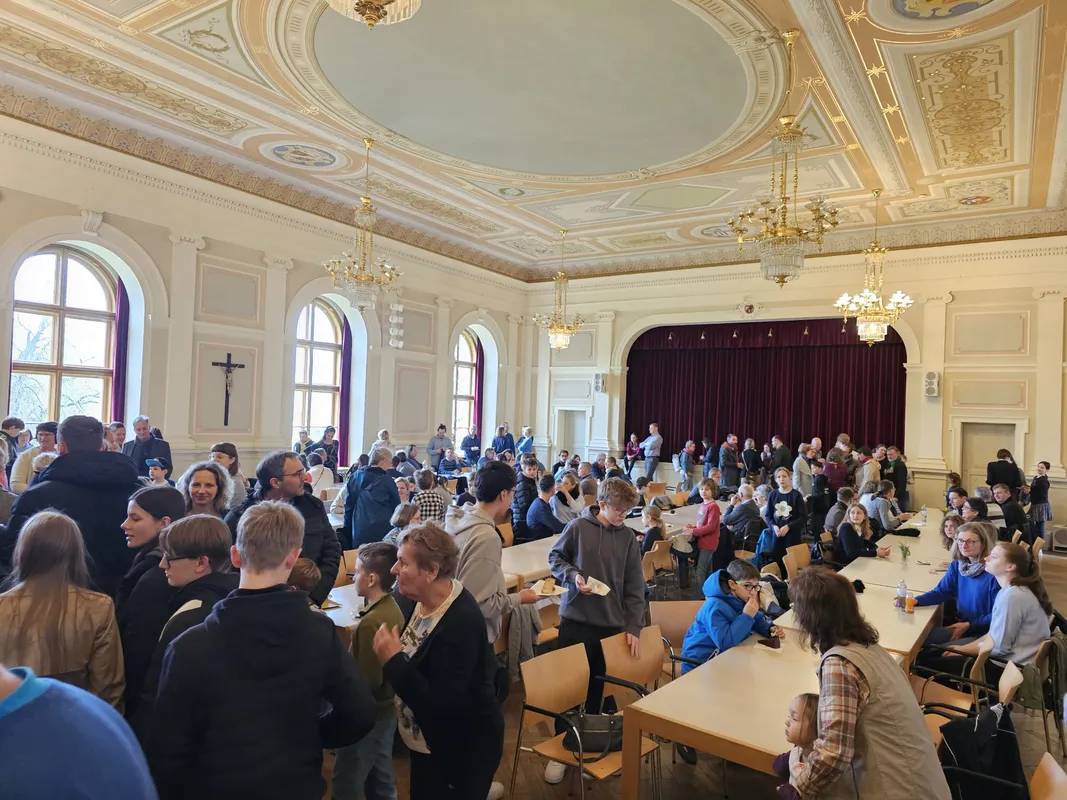 Am vierten Fastensonntag wurde zur zweiten Hausmesse dieses Schuljahres geladen, die wie in den letzten Jahren im Zeichen des Projektes „Essen für die Seele“ stand. Beim Gottesdienst mit dem diözesanen Obdachlosenseelsorger Julian Kapeller und Johannes Seidl wurde die Brücke schon geschlagen, die danach im Festsaal im Gespräch mit Gästen bei Kaffee und Kuchen vertieft werden konnte.
