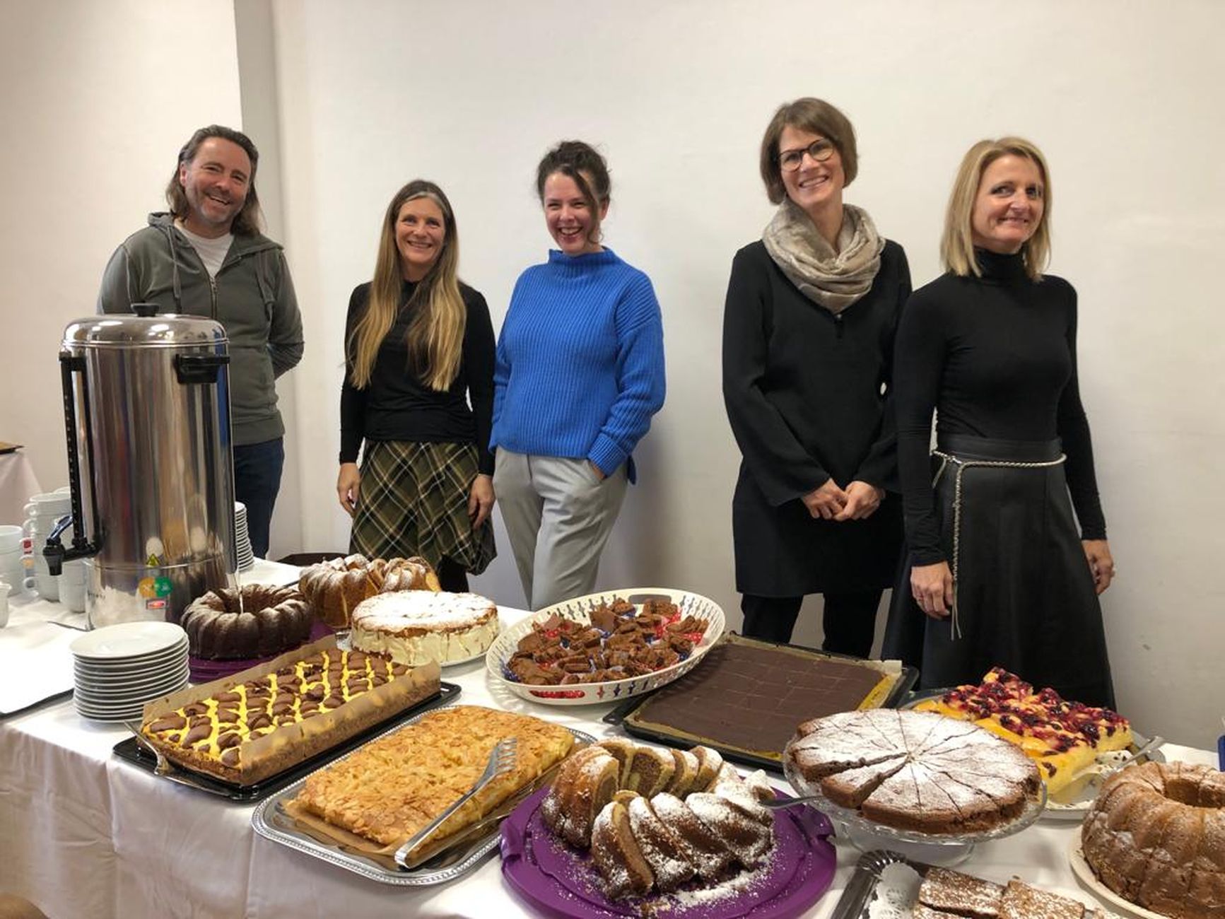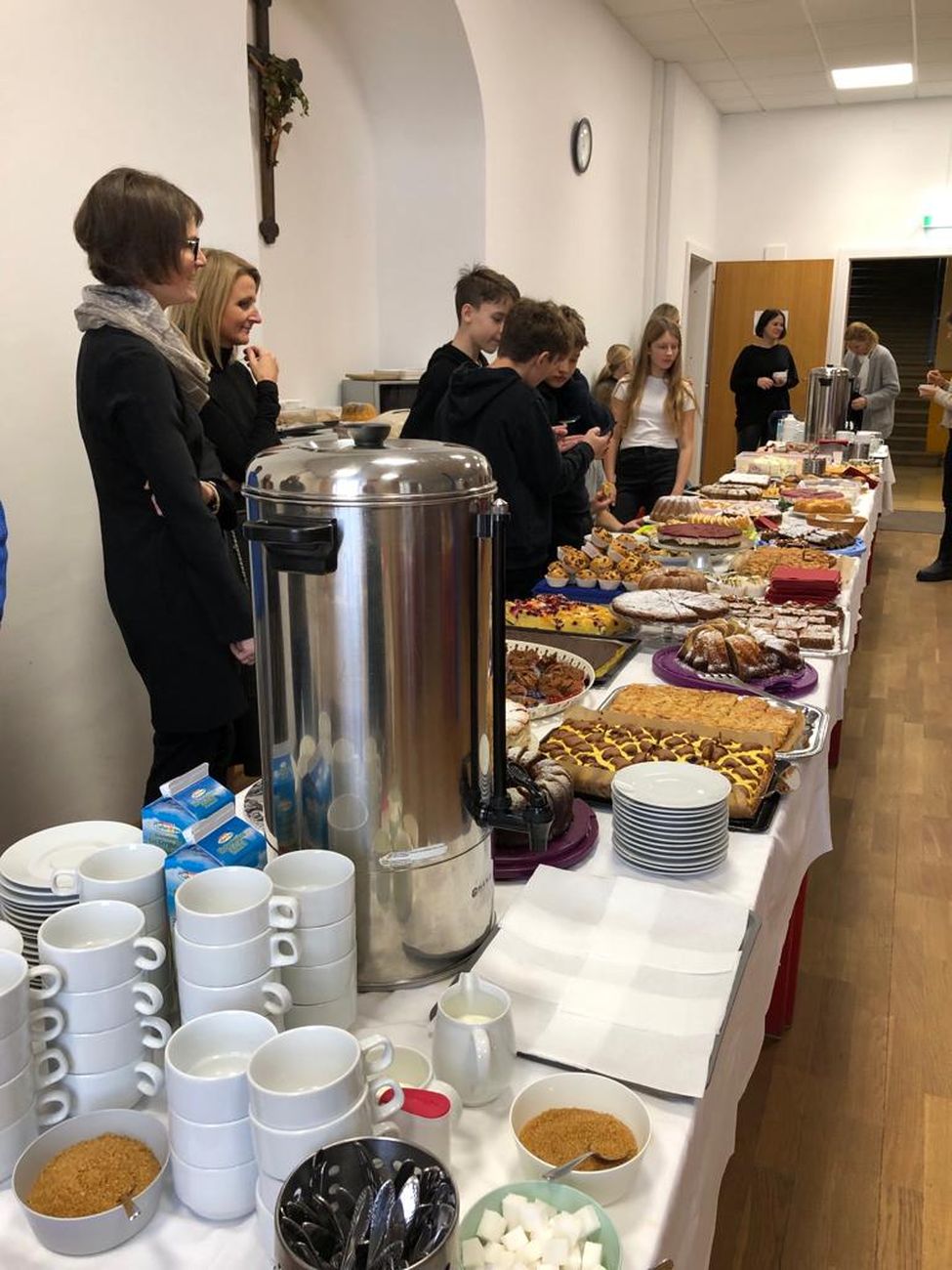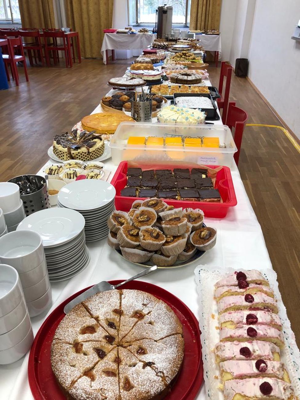 Im Anschluss an den Gottesdienst verköstigten uns die Schüler*innen, Eltern und Klassenvorstände der 3. Klassen, Prof. Söllner, Hackl-Lehner, Tokatligil-Egger und Siegl, mit hervorragenden selbstgebackenen Mehlspeisen. Kein Wunder, dass das Café bis 13:00 gut besucht war. Und wer dem Trubel im Speisesaal etwas entkommen wollte, dem wurde bei der Buchausstellung unter der Leitung der Professor*innen Ennser und Scherrer im Festsaal ein gelungenes Alternativprogramm geboten.