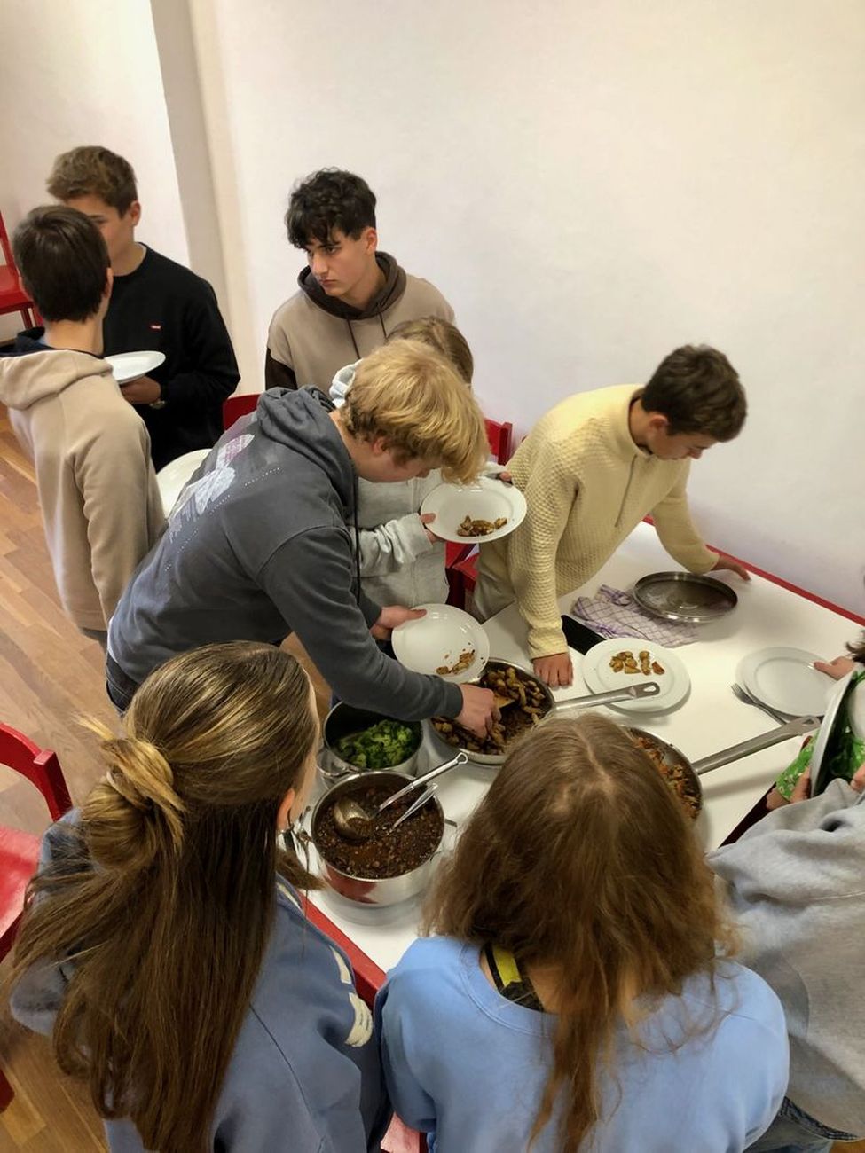 Im WPG Sportkunde erfolgte eine köstliche Einführung ins Thema Ernährung. Nach einem Input zu ausgewogener, vollwertiger Kost wurden verschiedene Rezepte herausgearbeitet und Einkaufslisten erstellt. Nach dem gemeinsamen Einkauf wurden die theoretischen Erkenntnisse in die Tat umgesetzt und drei vollwertige Mahlzeiten zubereitet und nebenbei die Nährwerte und Inhaltsstoffe analysiert. Das gemeinsame Essen bildete einen schmackhaften Abschluss des Projektes.