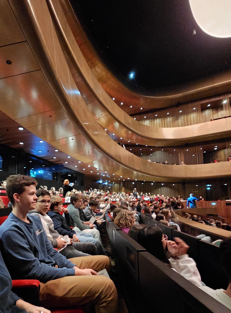 Einen Blick hinter die Kulissen des Musiktheaters warfen die Schüler:innen der 4. Klassen im Rahmen des heurigen Theaterprojekts, das drei Theaterbesuche beinhaltet. Nach Romeo und Julia im Oktober stand dieses Mal der Theaterbetrieb an sich im Mittelpunkt. In einer beeindruckenden Bühnenshow erhielten die Schüler:innen Einblick in die verschiedensten Berufe, die an einer Theaterproduktion beteiligt sind. Bühnen-, Masken- und Requisitenbildner:innen, Beleuchtungsmeister, Veranstaltungstechniker und Pyrotechniker zeigten eine Auswahl ihrer Werke und erzählten aus ihrem Arbeitsalltag. Damit leistete der Theaterbesuch auch einen wichtigen Beitrag zur Berufsorientierung, wurden doch zahlreiche Berufe vorgestellt.