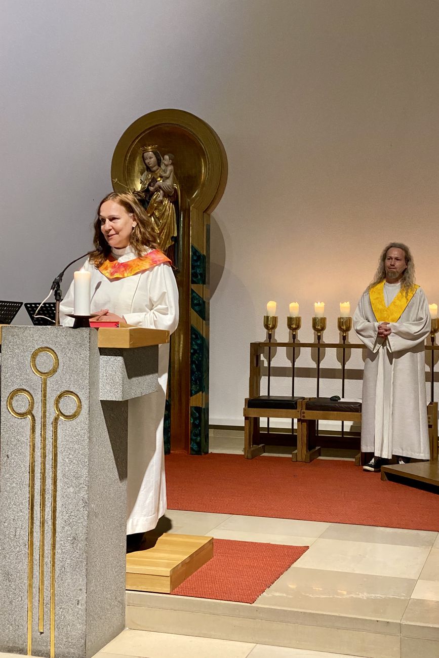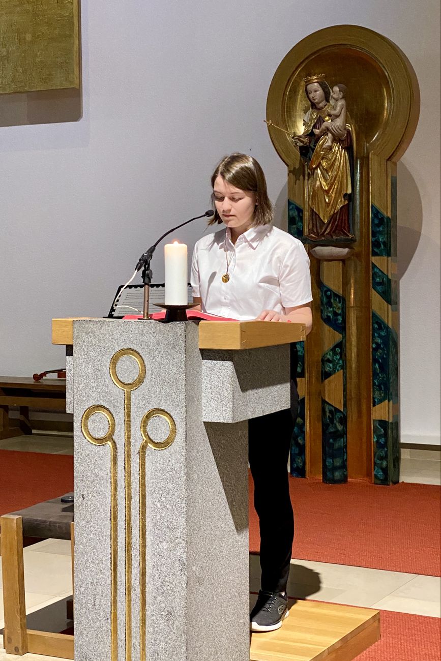 Die liturgische Leitung hatte dieses Mal Dipl. PAss. Monika Samhaber inne. Ausgehend von den Bibelstellen Röm 8,14-17 und Mt 28,16-20 erläuterte sie die befreiende Bedeutung des Glaubens an die Befreiungstat Gottes, die er in der Auferstehung Jesu gesetzt hat, und verdeutlichte diese Botschaft auch anschaulich, wobei sie Erlebnisse aus ihrer Arbeit in den Altenpastoral einfließen ließ. Herzlichen Dank auch an Kollegin Samhaber für diesen von Herzen kommenden Gottesdienst.