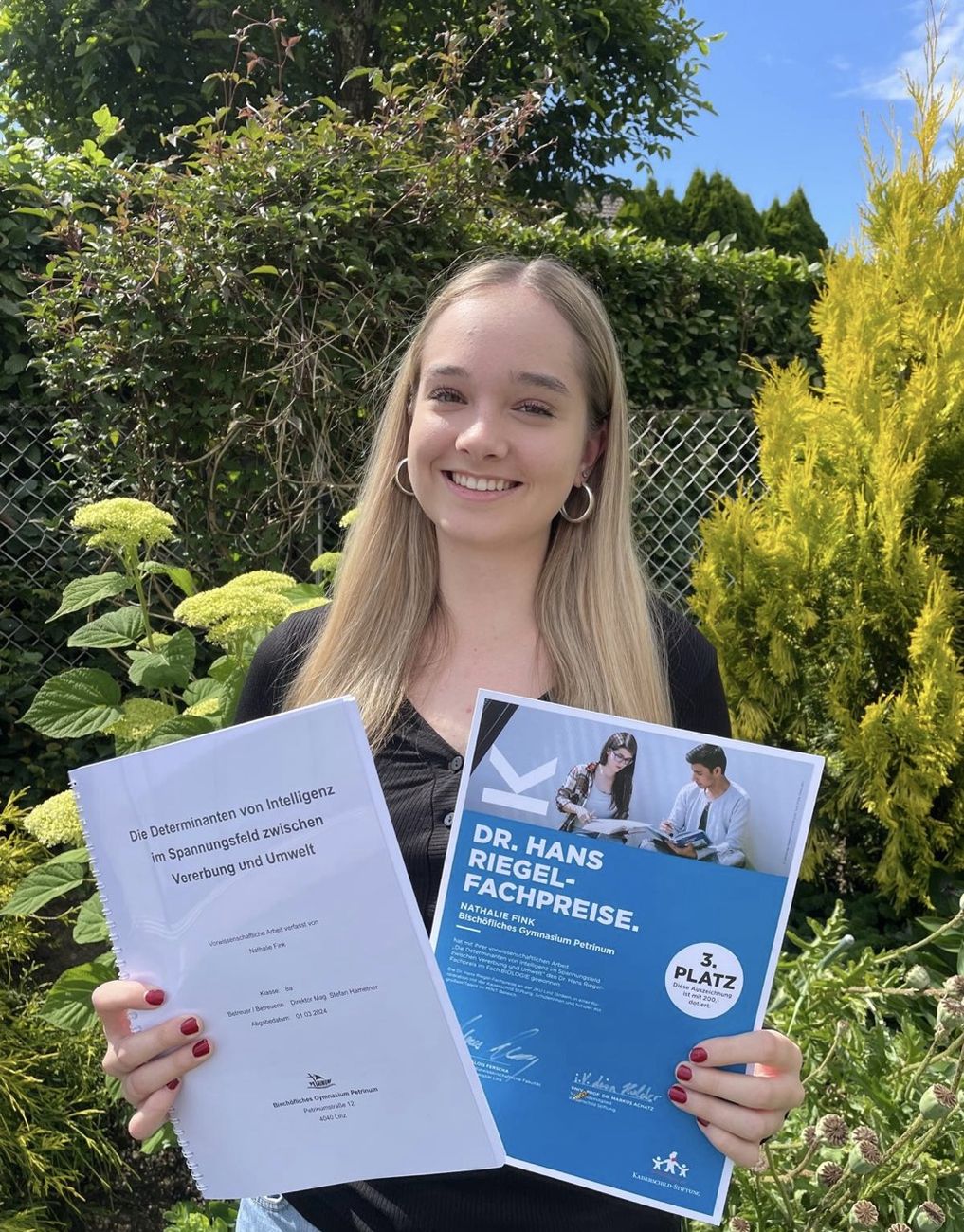 Ihre Arbeit mit dem Titel "Die Determinanten von Intelligenz im Spannungsfeld zwischen Vererbung und Umwelt" erreichte den dritten Platz beim Dr. Hans Riegel-Fachpreis.