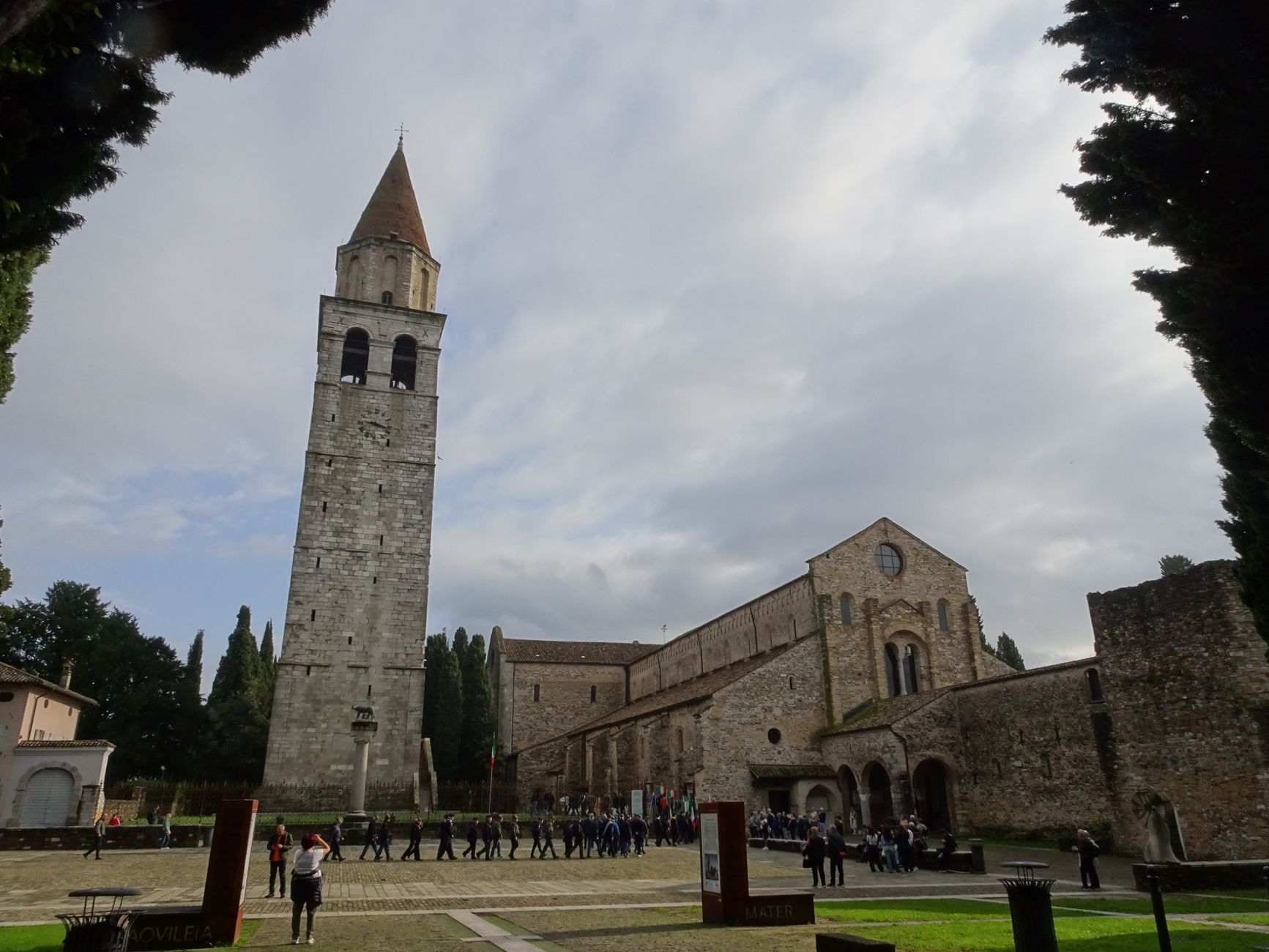 Ein wichtiges Ziel dieser Kulturreise war es, die wechselhafte Geschichte dieser Gegend am Golf von Triest anhand beispielhafter Orte und Sehenswürdigkeiten nachzuvollziehen. Dabei wurde der Bogen beginnend bei den Römern bis zum Triestiner Jubiläumsjahr 2024 gespannt: von den spätrömischen Fußbodenmosaiken der Basilika in Aquileia über den spätantiken Tempietto Longobardo in Cividale del Friuli, vom venezianischen Flair Udines über die Sommerfrische des k.u.k Adels in Grado bis zum ambivalenten Mahnmal der Isonzoschlachten in Redipuglia reichten die Stationen. Neben einer Wanderung auf dem nach Rainer Maria Rilke benannten Sentiero di Rilke zwischen Sistiana und Duino, wo nach 1945 die Grenze zwischen Italien und dem Freien Territorium Triest verlief und einem Ausflug in die sehenswerte Karsthöhle bei San Canziano / Škocjan, wo der slowenische Fluss Reka im Kalk des Karst verschwindet, um 35 km später als Timavo bei Duino wieder ans Tageslicht zu strömen, durfte natürlich auch die Besichtigung des für den jüngeren Bruder Kaiser Franz Josefs erbauten Traumschlosses Miramare nicht fehlen und die Besteigung des zu Beginn des 20. Jh. als Triumphsäule über Österreich-Ungarn errichteten Leuchtturms Faro della Vittoria. Das Finale furioso fand schließlich auf der Piazza dell’Unità d’Italia, dem Hauptplatz Triests, statt: genau zu den Feierlichkeiten des 70-Jahr-Jubiläums der Wiedereingliederung Triests in den italienischen Staat erreichten wir das Stadtzentrum und wurden Zeug*inn*en der festlichen Stimmung eines wahrhaft nicht alltäglichen Spektakels.