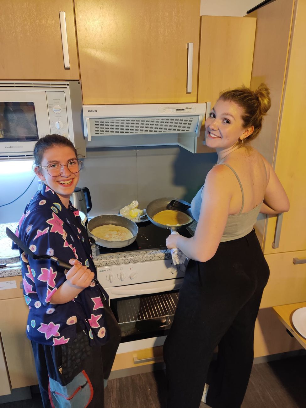 Liebe geht durch den Magen. Interkultureller Austausch auch, davon waren zumindest die Schülerinnen der 7A überzeugt, als sie am letzten Tag der EU-Kooperation mit Polen und Italien Pfannen, Kochlöffel und Küchenfreunde schwangen. Palatschinken für 40 Personen standen auf dem Speiseplan.