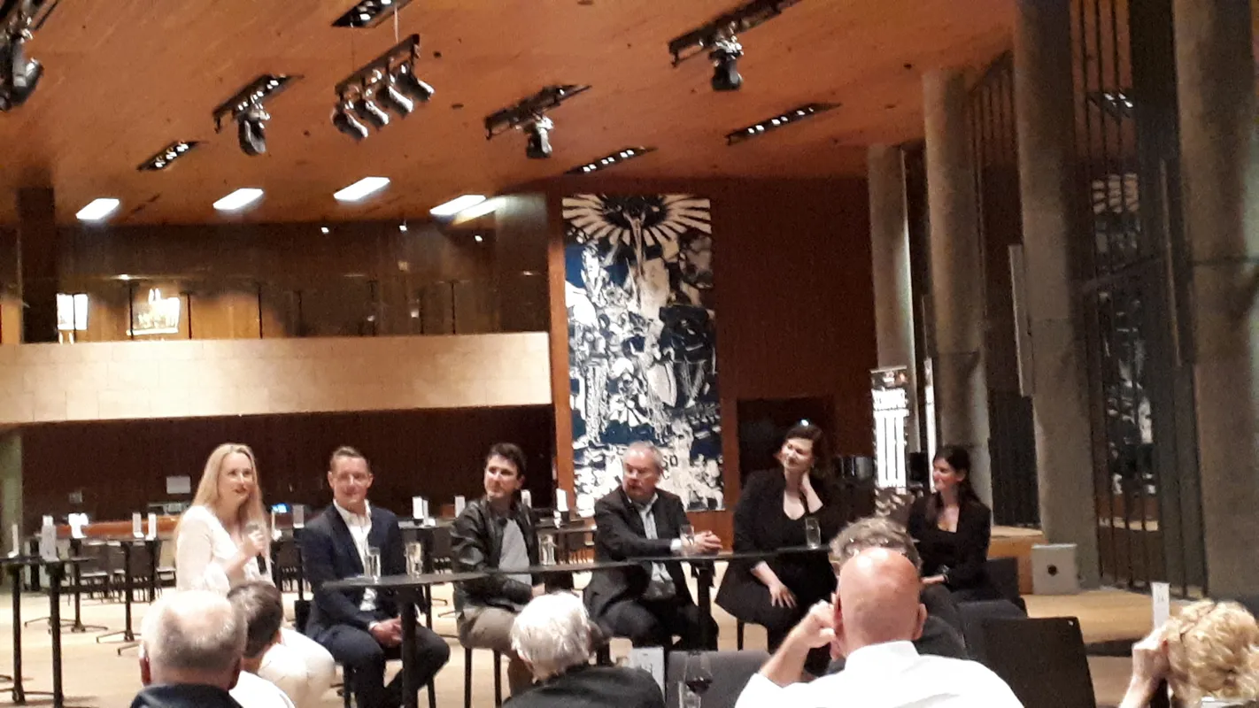 Am 30. April folgte dann der Opernbesuch – exzellente Plätze in den ersten Reihen, ein musikalisch anspruchsvolles und packendes Opernerlebnis und ein interessantes Künstlergespräch mit den hervorragenden Hauptakteuren, musikalischer und dramaturgischer Leitung sowie dem Komponisten selbst bildeten einen gelungenen Abend.