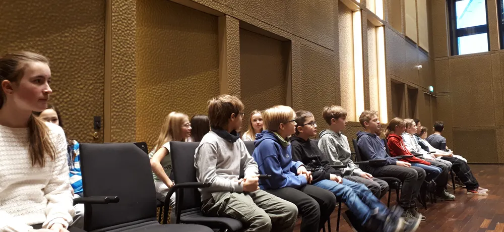 Höhepunkt und Abschluss bildete der Besuch einer Probe des Brucknerorchesters im großen Orchestersaal des Musiktheaters, bei der die Schüler*innen einen Eindruck von der Probenarbeit sowie vom imposanten Klang eines großen Sinfonieorchesters gewinnen konnten – geprobt wurde natürlich Anton Bruckner – die 2b-Klasse konnte den eindrucksvollen Klängen der 4. Sinfonie lauschen.
