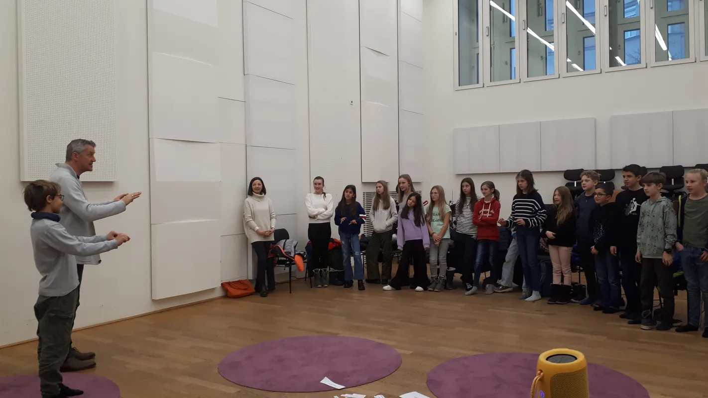 Zu Beginn des Brucknerjahres 2024, in dem der 200. Geburtstag des oberösterreichischen Komponisten gefeiert wird, machte sich am 8. Jänner 2024 die 2b-Klasse auf den Weg ins Linzer Musiktheater. Dort erwartete sie neben einer kurzen Hausführung ein Workshop zum Komponisten, den auch Musiker*innen aus dem Brucknerorchester sowie Chefdirigent Markus Poschner bereicherten, mit dem die Schüler*innen sogar eigene Dirigierversuche starten durften.