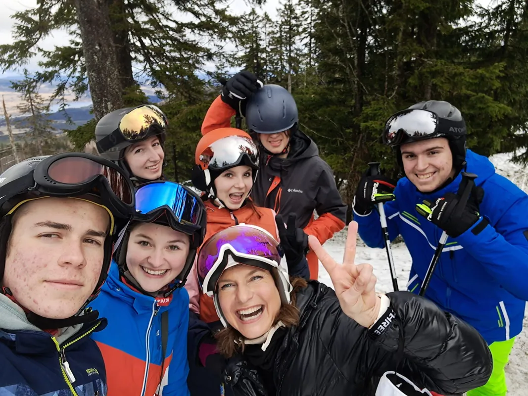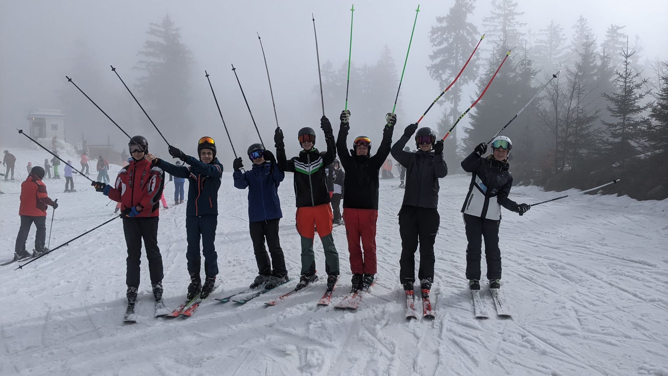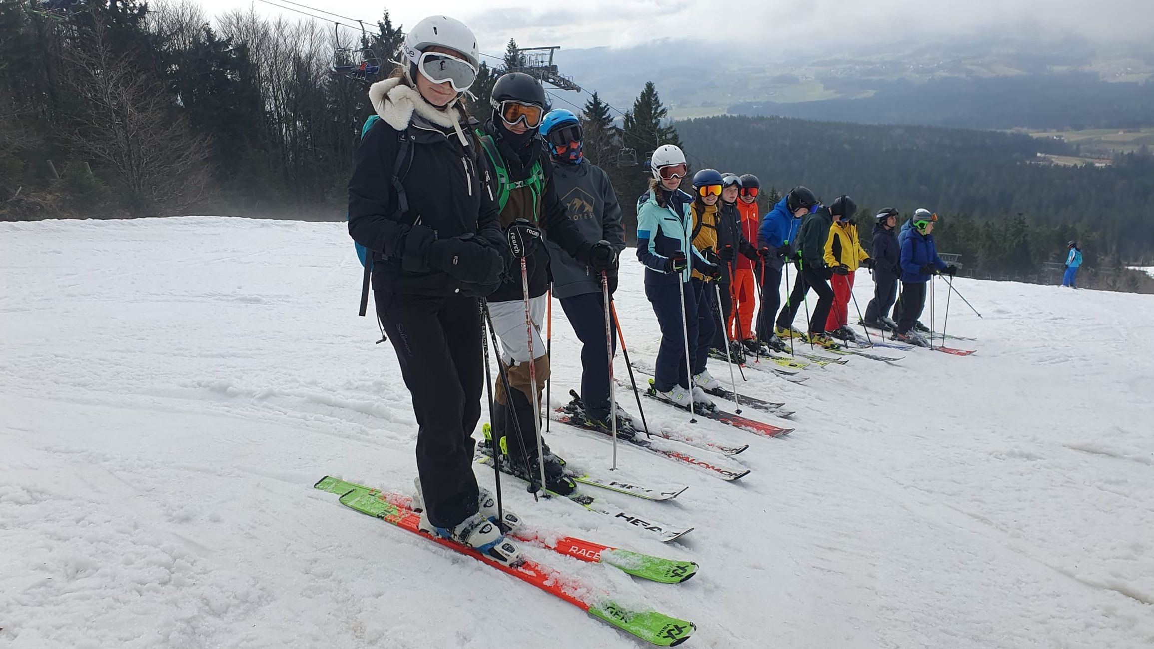 Bei traumhaftem Wetter und tiefwinterlichen Schneebedingungen verbrachten 135 Schüler:innen der Oberstufe und 14 Lehrkräfte den traditionellen Skitag am Hochficht im Böhmerwald. Die Pisten präsentierten sich bei der sehr frühen Ankunft noch in ein leichtes Nebelkleid gehüllt, doch schon bald klarte es auf, die Sonne kam zum Vorschein und legte auch die Sicht auf die Winterlandschaft frei. Der griffige Neuschnee bot den idealen Untergrund für die beeindruckenden Carvingschwünge aller Teilnehmer:innen. Nach unzähligen traumhaften Fahrten nutzte die eine oder andere Gruppe noch das gastronomische Angebot. Insgesamt ein von Prof. Hadeyer perfekt organisierter Skitag in den böhmischen Wäldern.