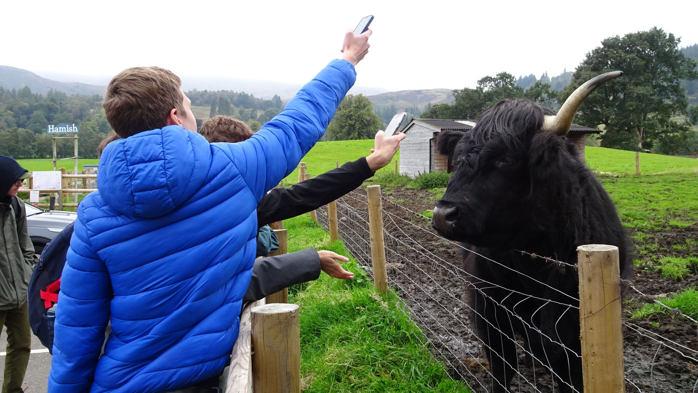 On Monday we went on a day trip with our teachers and David, who was our guide for the day. We travelled by bus and our first stop was a small tourist shop that also had a cafe. Outside the shop was a large field where we first saw the Highland cows. The second stop was at Loch Katrine. We could decide if we wanted to go for a walk or have lunch in the nearby restaurant. Most of us decided to walk around the loch, which was a really good decision. The scenery was stunning and we saw some wildlife. Then we went to the Wallace Monument, which is a really tall tower. It was fun to walk up the hill with your friends after sitting on the bus for an hour. Our last stop was Stirling Castle. We were split into groups from our Old English classes and explored the castle together. Overall, the day trip was a great experience and a really fun and interesting thing to do with friends.