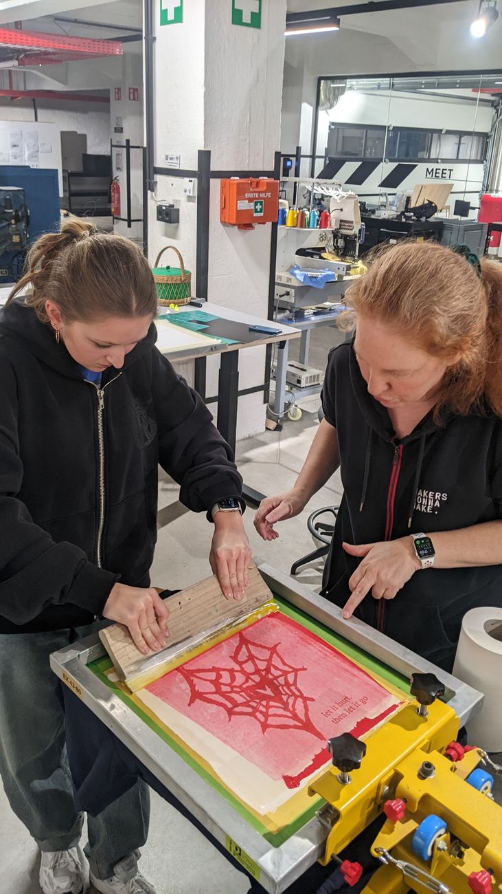 Am Donnerstagnachmittag gingen wir um 14:00 von der Schule los und machten uns auf den Weg in die Grand Garage. Dort erwartete uns der langersehnte Siebdruckworkshop, für den wir bereits ein Motiv vorbereitet hatten. Wir durften verschiedene Stücke von T-Shirts über Pullover bis hin zu Stofftaschen mit unserem eigenen Entwurf bedrucken. Wir hatten sehr viel Spaß. Vielen Dank für die Möglichkeit unseren inneren Modedesigner herauslassen zu können!