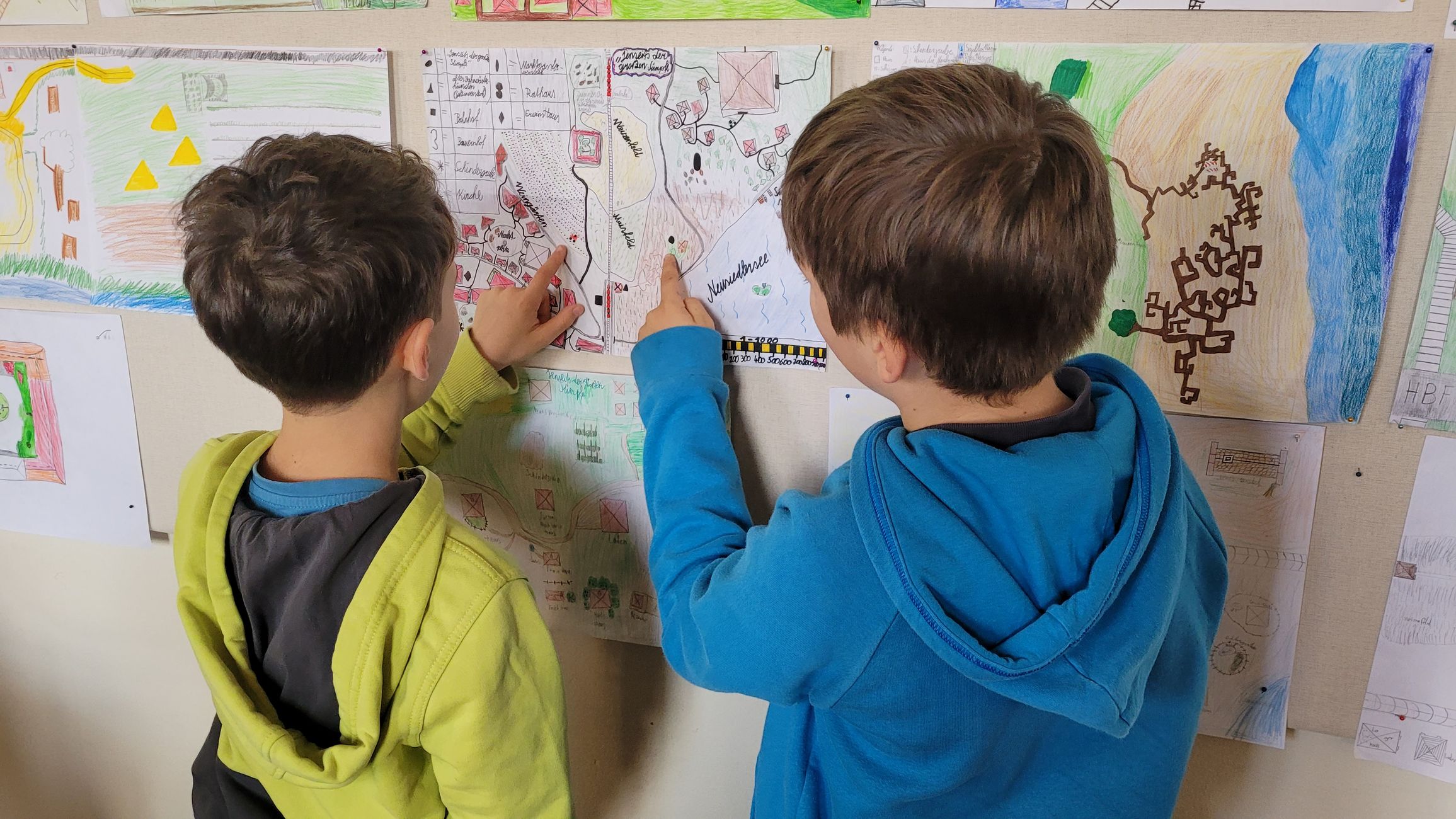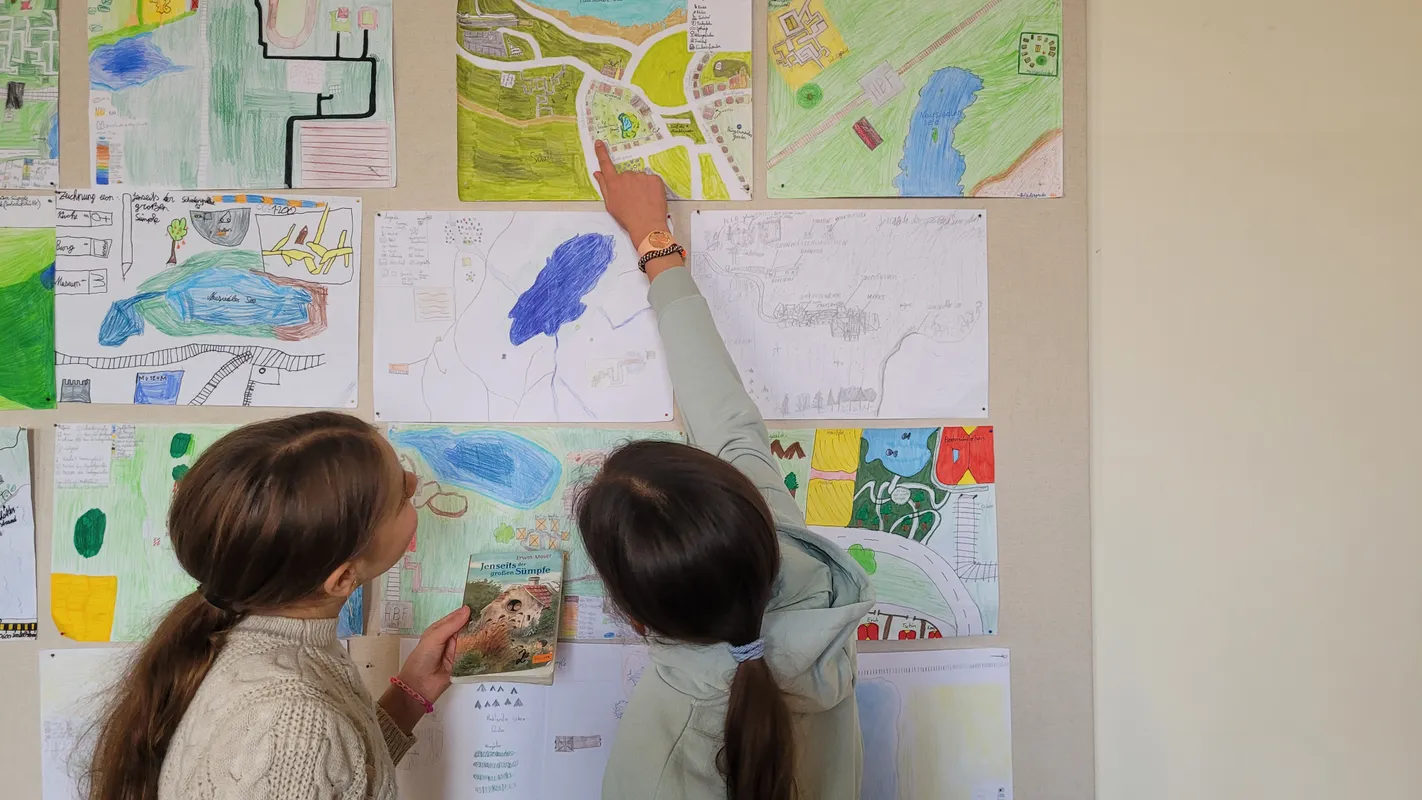 Den Abschluss bildete der Mathematikunterricht, in dem die Schülerinnen und Schüler das im Buch beschriebene Bandenquartier maßstabsgetreu berechneten und zeichneten. Die entstandenen Karten und Pläne lassen die Abenteuer der Lektüre lebendig werden und zeigen eindrucksvoll, wie spannend und vielseitig Lernen sein kann.