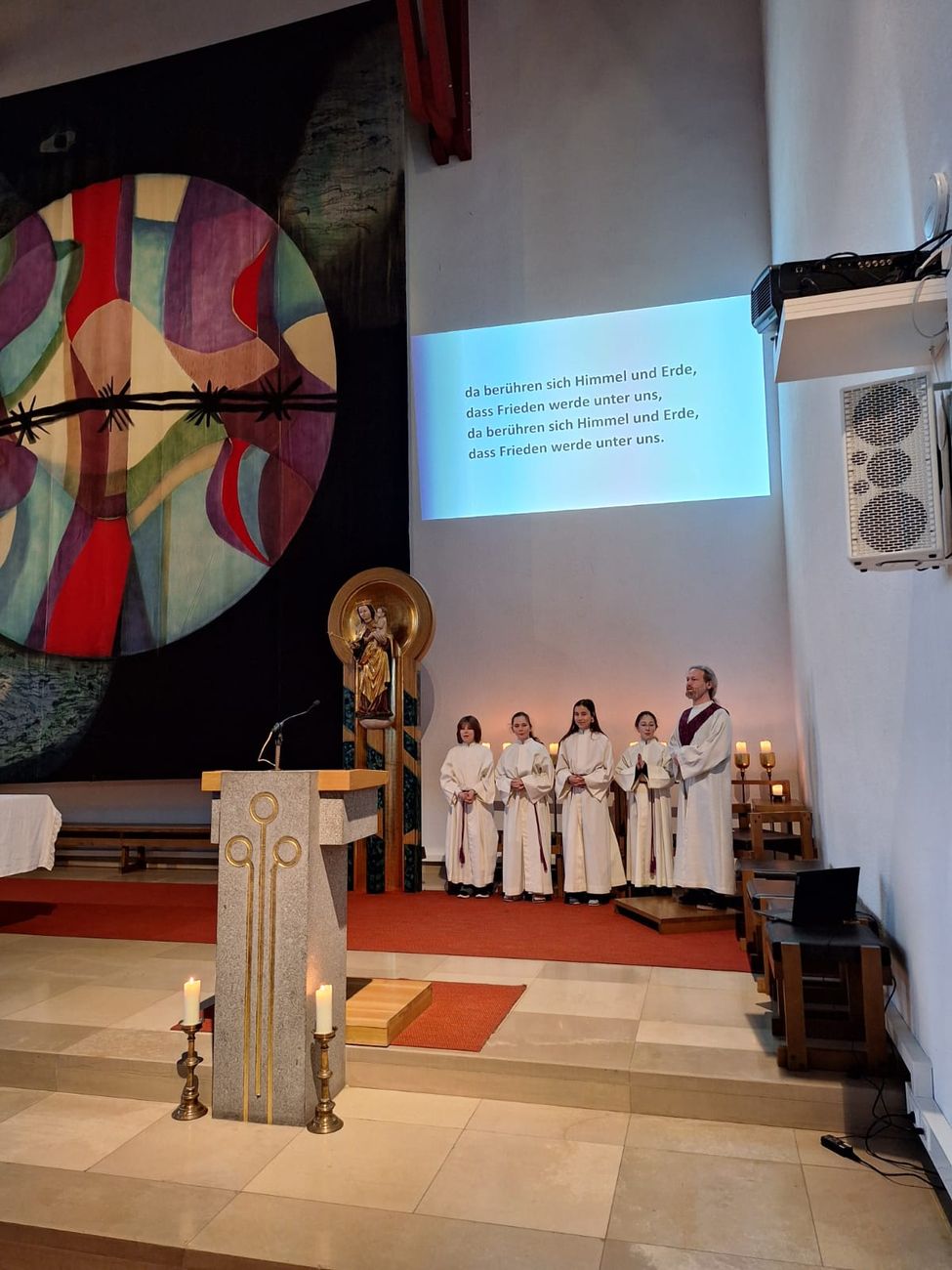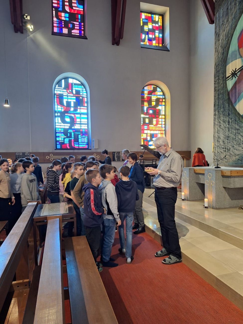 Musikalisch begleitet wurde die Feier durch die 3A-Klasse, Ferdinand Kamml aus der 4B-Klasse, Timon Melzer aus der 6B und Franziska Petermandl aus der 3B unter der Leitung von Donata Großpötzl. Vielen Dank an alle Musizierenden, an die Ministrantinnen aus der 1B und diejenigen, die Fürbitten gelesen und andere liturgische Dienste übernommen haben.