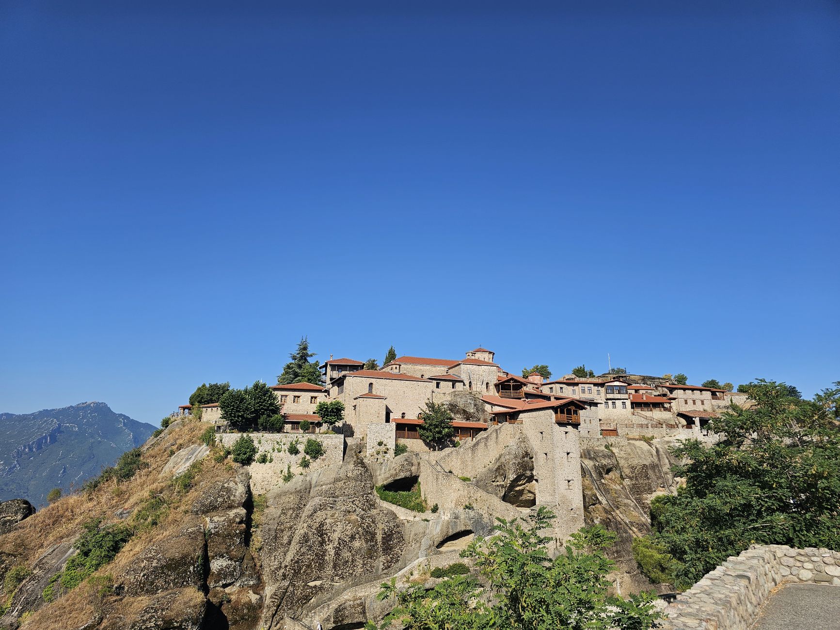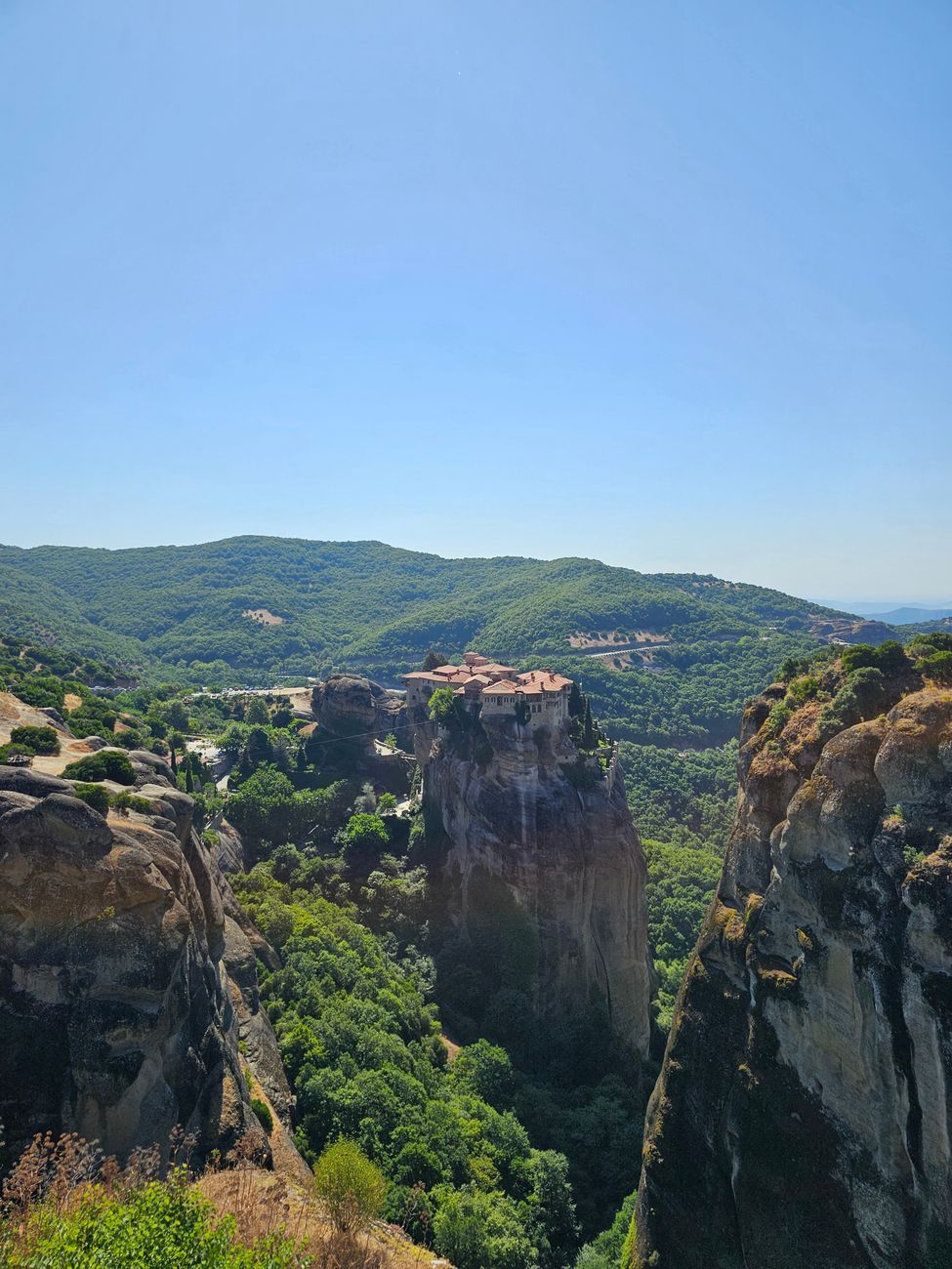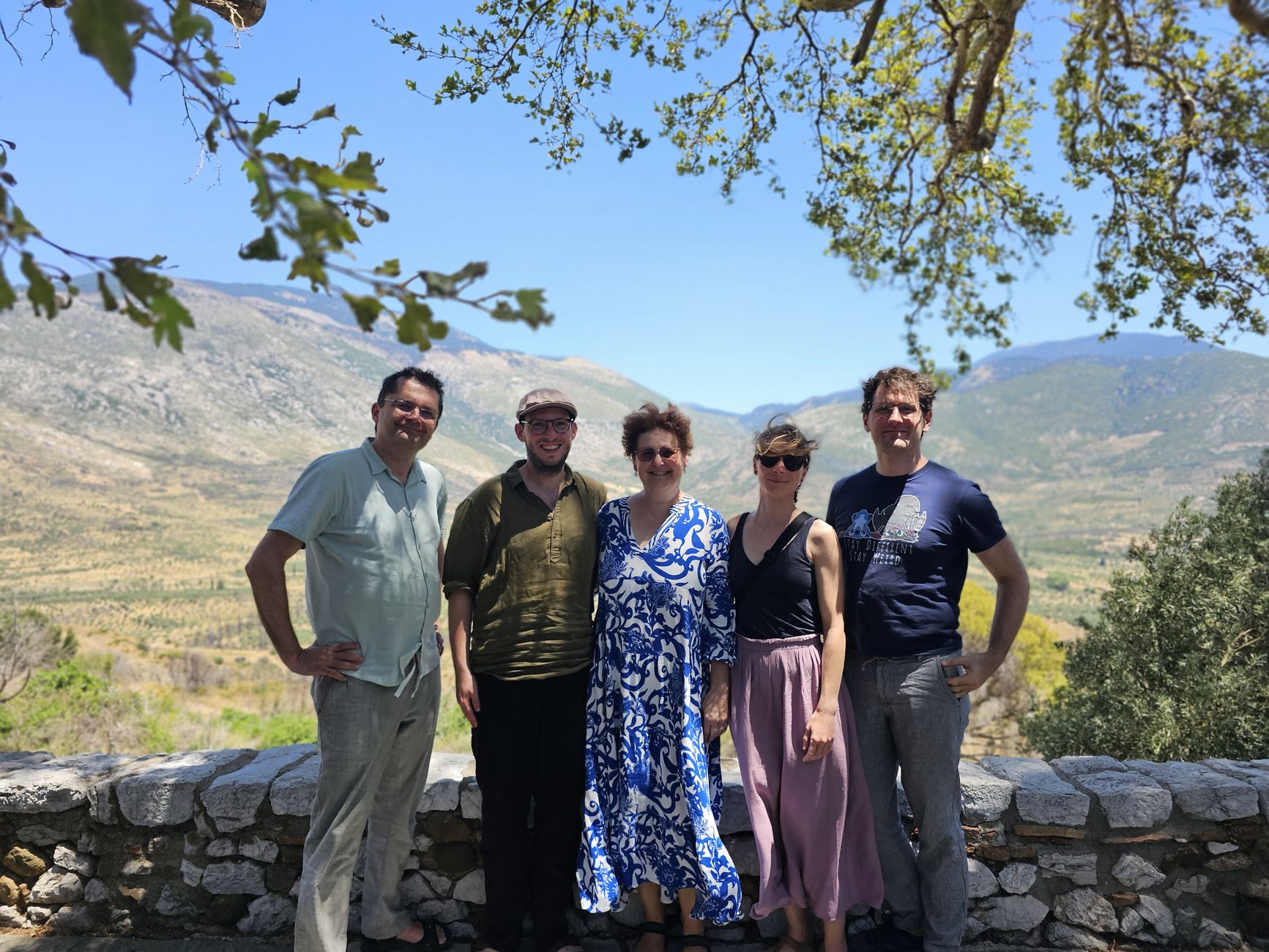 Hinauf geht es am Morgen ins Kloster Megálo Metéoro, wo uns Frau Prof. Cerwenka nach einem kurzen (Rest-)Aufstieg, wo wir das atemberaubende Panorama bestaunen dürfen, die Besonderheiten des Klosters näherbringt, die Motivik der Wand- und Deckenfresken, den Aufbau des Klosters und seine Geschichte. Auch ein zweites, kleineres Kloster liegt noch auf unserem Weg, bevor unsere Reise schon weiter nach Süden in Richtung Delphi geht, um das nächste Orakel zu befragen.