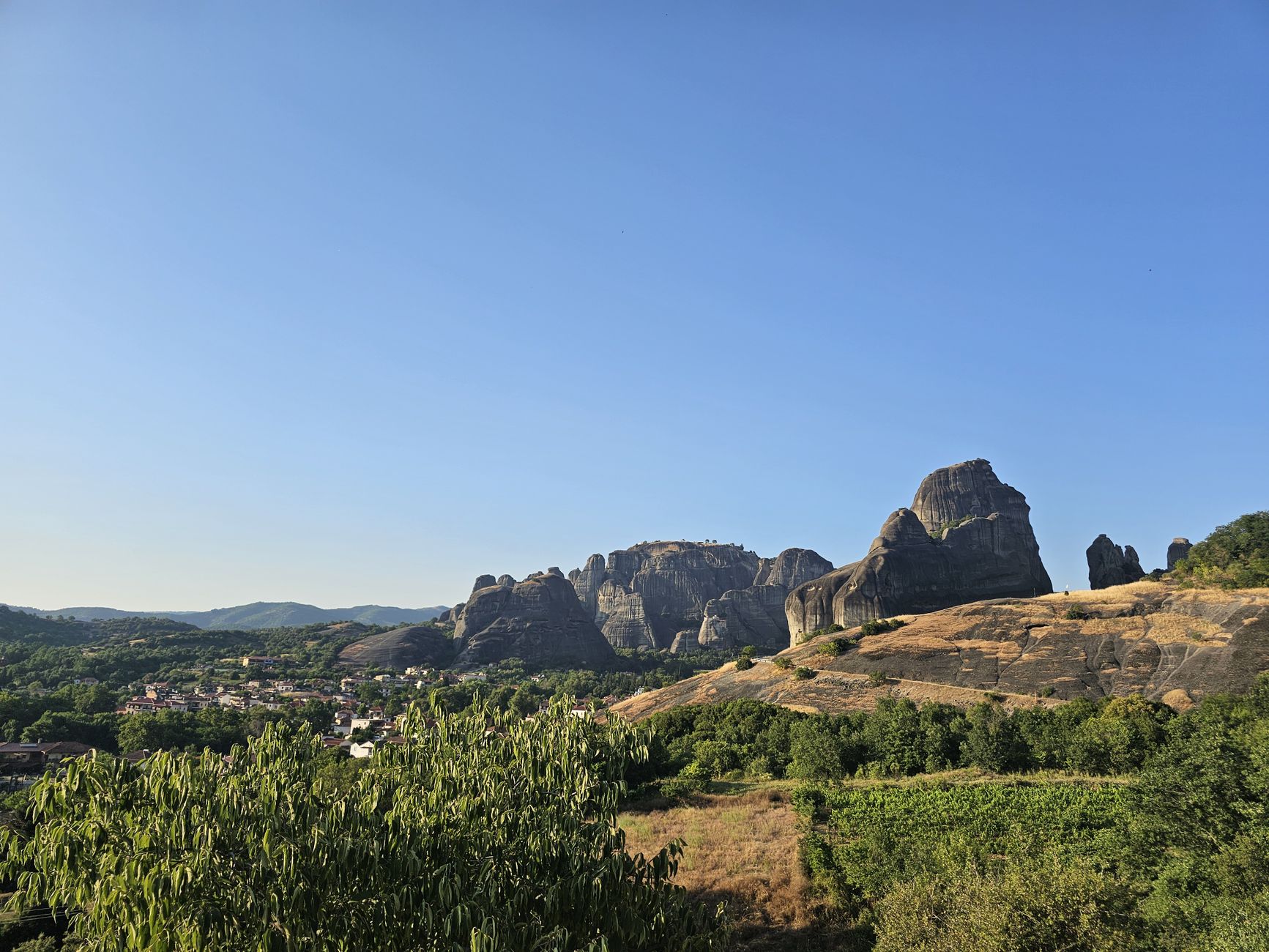 Am Morgen des 03. Juli betreten wir schließlich zum ersten Mal das griechische Festland und suchen sogleich das Orakel von Dodona auf, dessen Windspiele und Klänge uns den weiteren Weg weisen sollen. Anschließend geht es in die Unterwelt in die Höhlen von Perama, wo uns heiß ersehnte Abkühlung und wunderschöne Tropfsteinhöhlen, leider aber keine Höllenhunde oder andere Sagengestalten, erwarten. Unsere Zelte schlagen wir zum ersten Mal (und fast ohne technische Probleme) in der Nähe der Meteora-Klöster auf, um diese am nächsten Tag zu besichtigen.