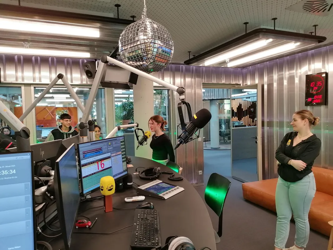 Der Life Radio Sender hat den modernsten Audiocampus Europas. Die Klasse erfuhr jede Menge über Medien und durfte selbst einen Radiobeitrag und einen Podcast gestalten.