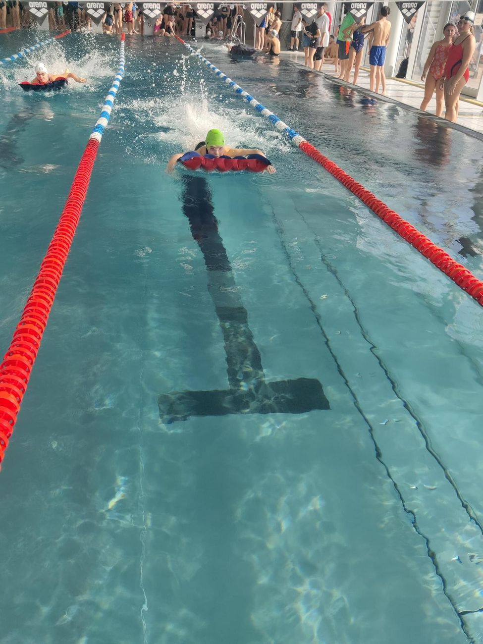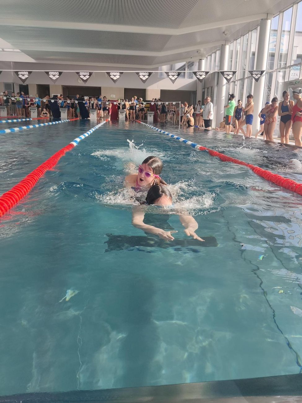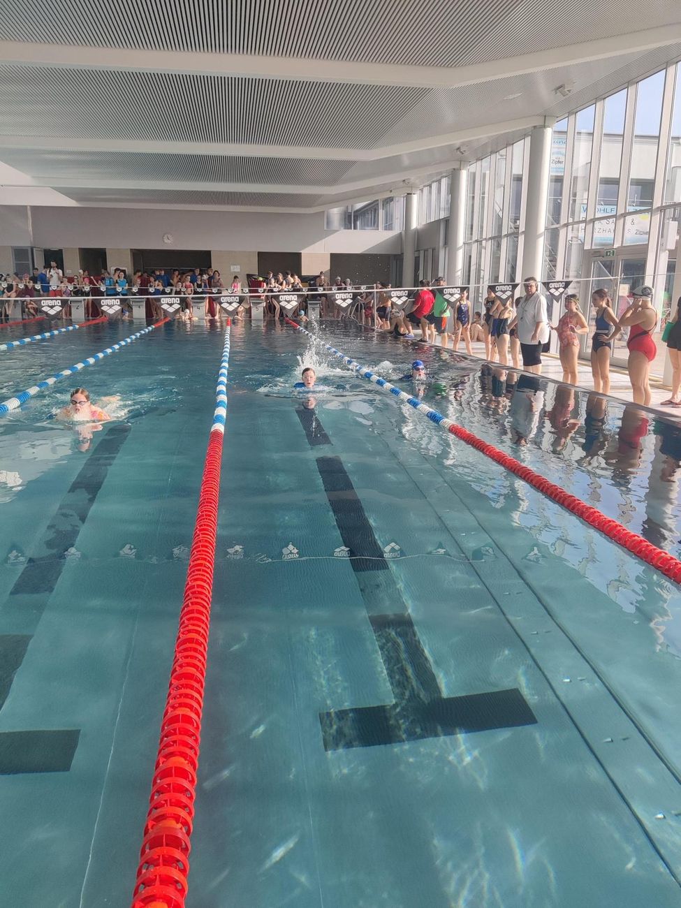 Die Mädels machten unter tropischen Bedingungen den Auftakt für das Petrinum und lieferten bei der Kraulstaffel eine tolle Leistung ab. Etwas Ladehemmung hatte das Burschenteam bei seinem ersten Bewerb.