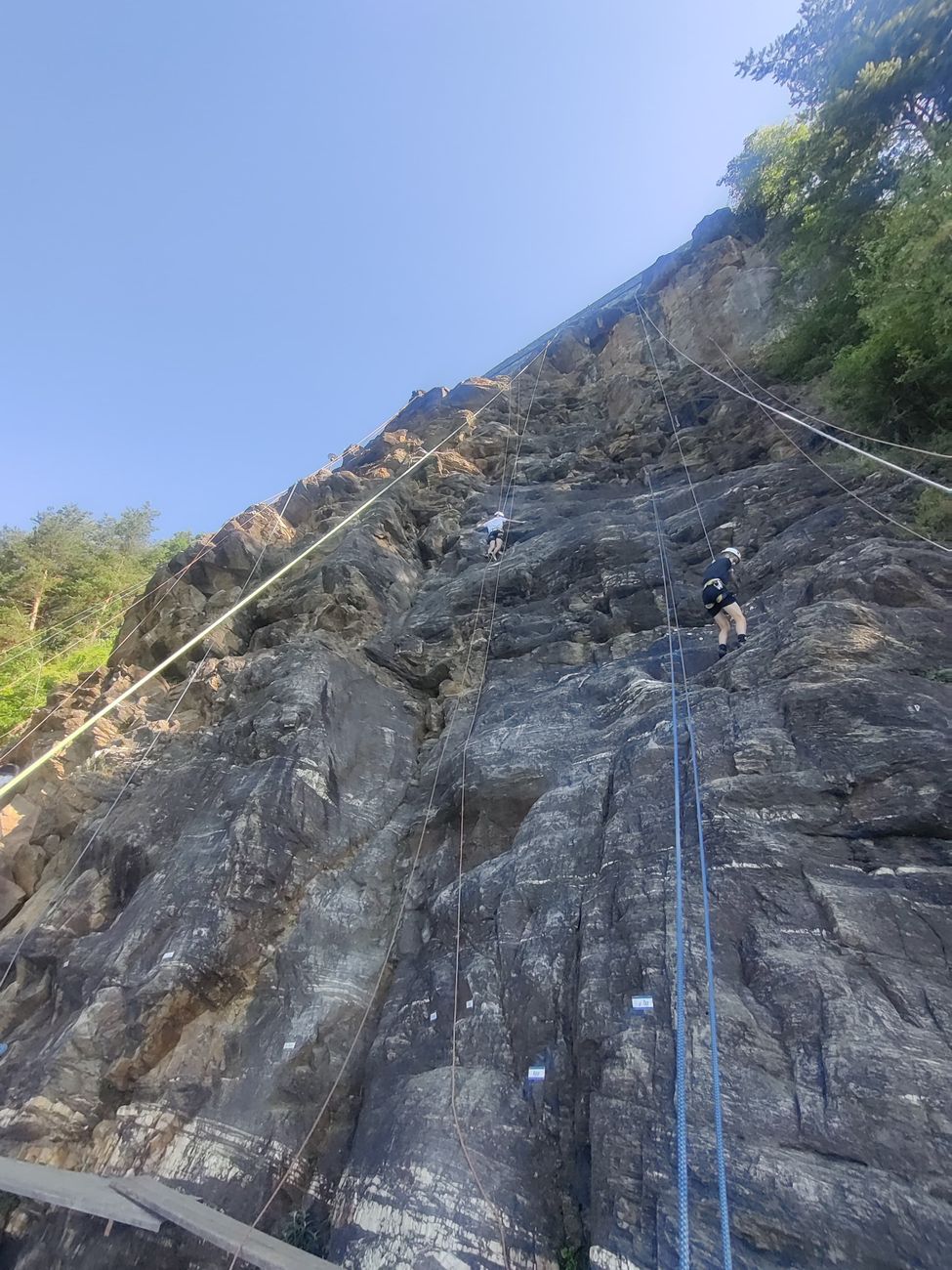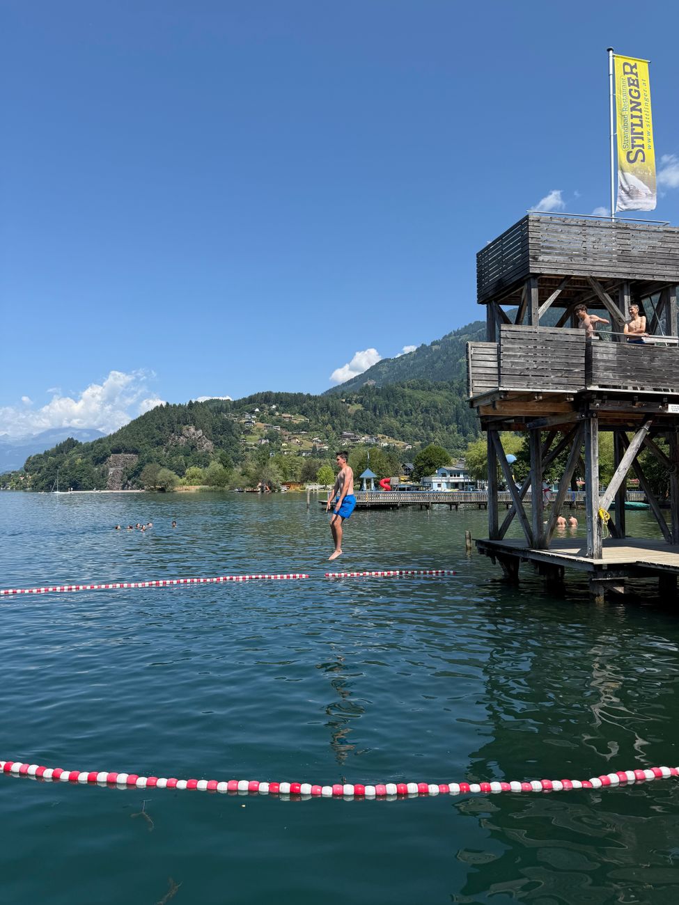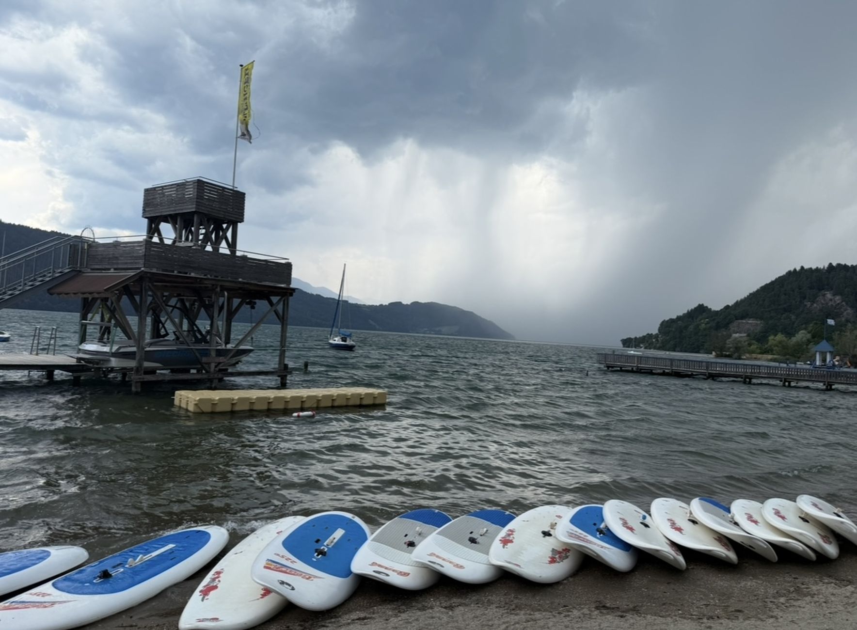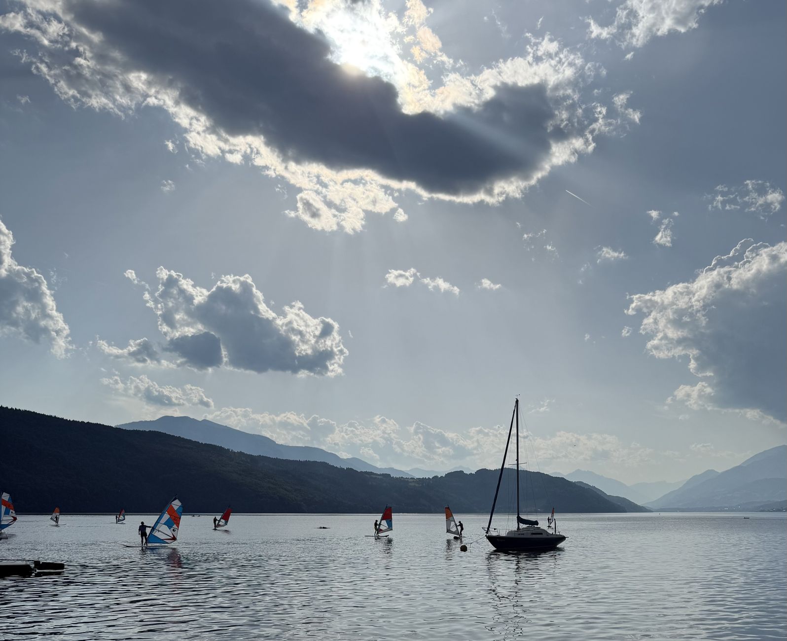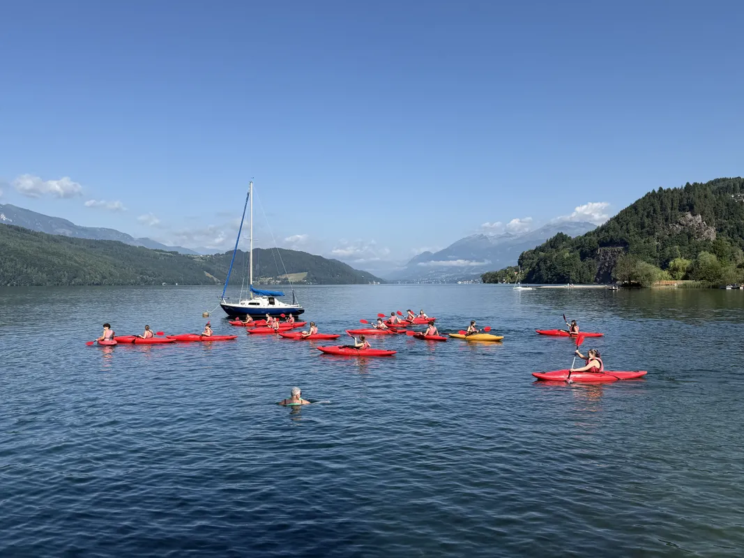 Die diesjährige Sommersportwoche der 5. Klassen fand bei traumhaftem Wetter in Döbriach am Millstättersee statt. Bei strahlendem Sonnenschein - nur kurz unterbrochen von einem heftigen Gewitter - konnten die Schülerinnen und Schüler ein abwechslungreiches Sportprogramm genießen. Auf dem Wasser standen eine Vielzahl an Aktivitäten zur Auswahl: Segeln, Surfen, Kajakfahren und Wakeboarden sorgten für Begeisterung und neue Erfahrungen. An Land kamen Tennis, Klettern und weitere sportliche Freizeitaktivitäten wie Trailrunning, Beachvolleyball und Fußball zum Einsatz.
