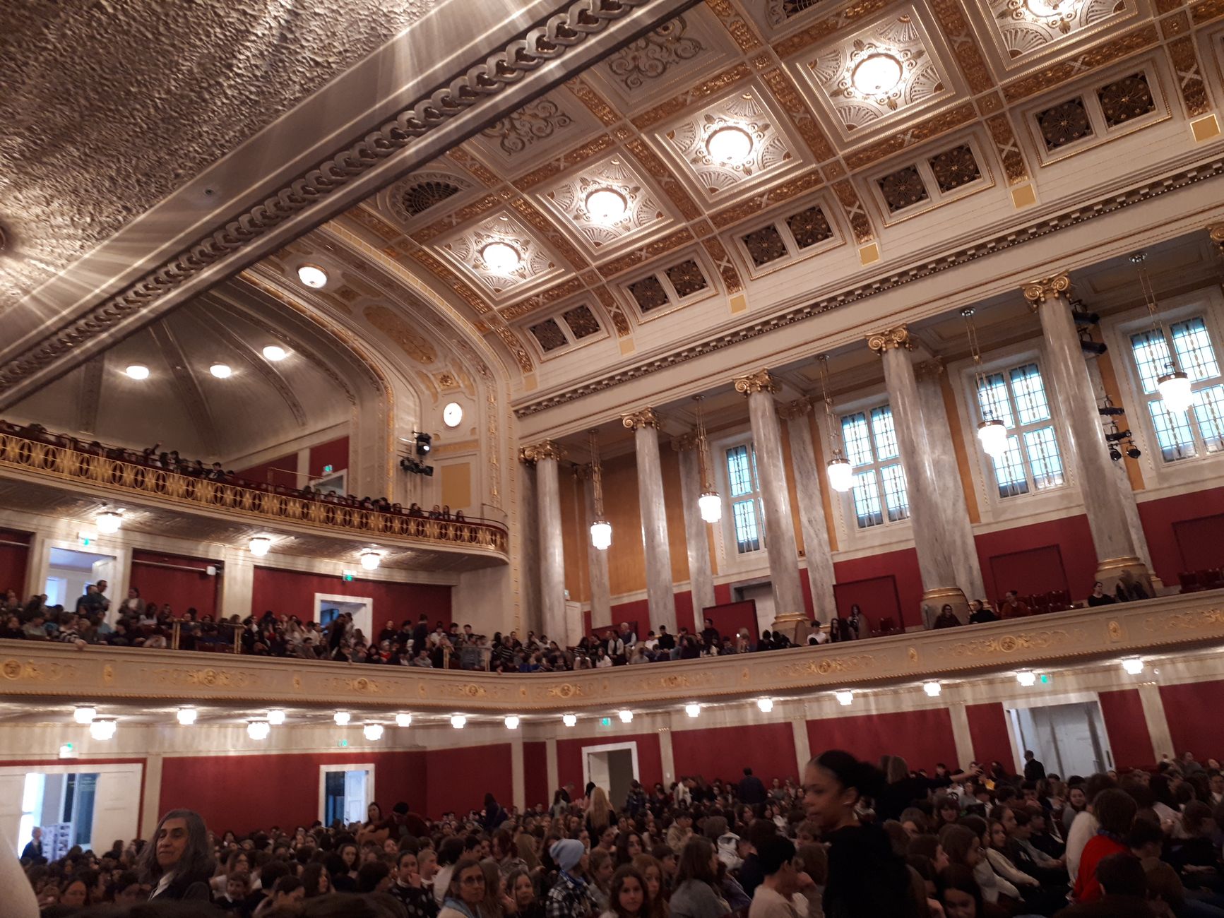 Die Wiener Philharmoniker einmal live im Konzertsaal zu erleben, war Ziel und Highlight des Ausflugs der Musiker*innen der 8a- und 8b-Klasse. Die Philharmoniker luden zum Jugendkonzert in den Großen Saal des Wiener Konzerthauses, sie begeisterten das Publikum mit einem kurzweiligen Programm voll bekannter und auch berühmter Melodien. Von Mozart bis Barber, von Brahms bis Bruckner und Strauss – der musikalische Bogen war weit gespannt und das Orchester erhielt für die intensiv interpretierten Stücke begeisterten Beifall.
