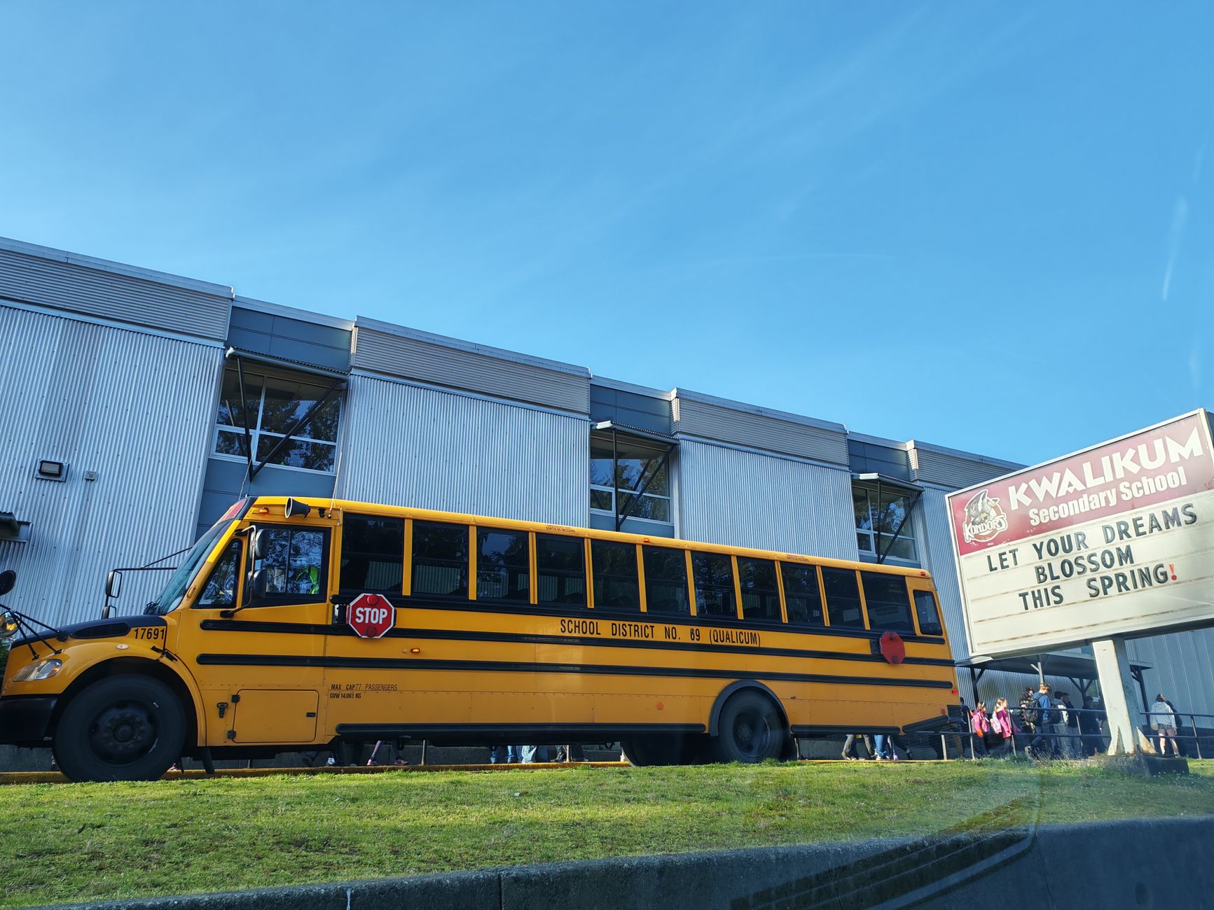 “We live and work on the land of the Qualicum First Nation in Coast Salish Territory.” – Mit dieser Erinnerung, sowie dem Wort der Woche in Hul'q'umi'num', der Sprache der lokalen First Nation, dem Witz des Tages in Englisch und den Ankündigungen, welche Veranstaltungen anstehen, welche Clubs sich treffen oder was es in der Cafeteria zu essen gibt, beginnt jeder Schultag in der KSS, der Kwalikum Secondary School in Qualicum Beach auf Vancouver Island. Seit Ende Jänner dauert ein normaler Schultag für uns von 8:50 bis 15:13, inkl. einer 45min-Mittagspause, die wir in der Schule, in der Stadt oder auch am Strand verbringen können. Pro Semester werden nur 4-5 verschiedene Unterrichtsfächer gewählt, Hausübungen und Tests gibt es wenige, Projekt- und Partnerarbeiten dafür viele.