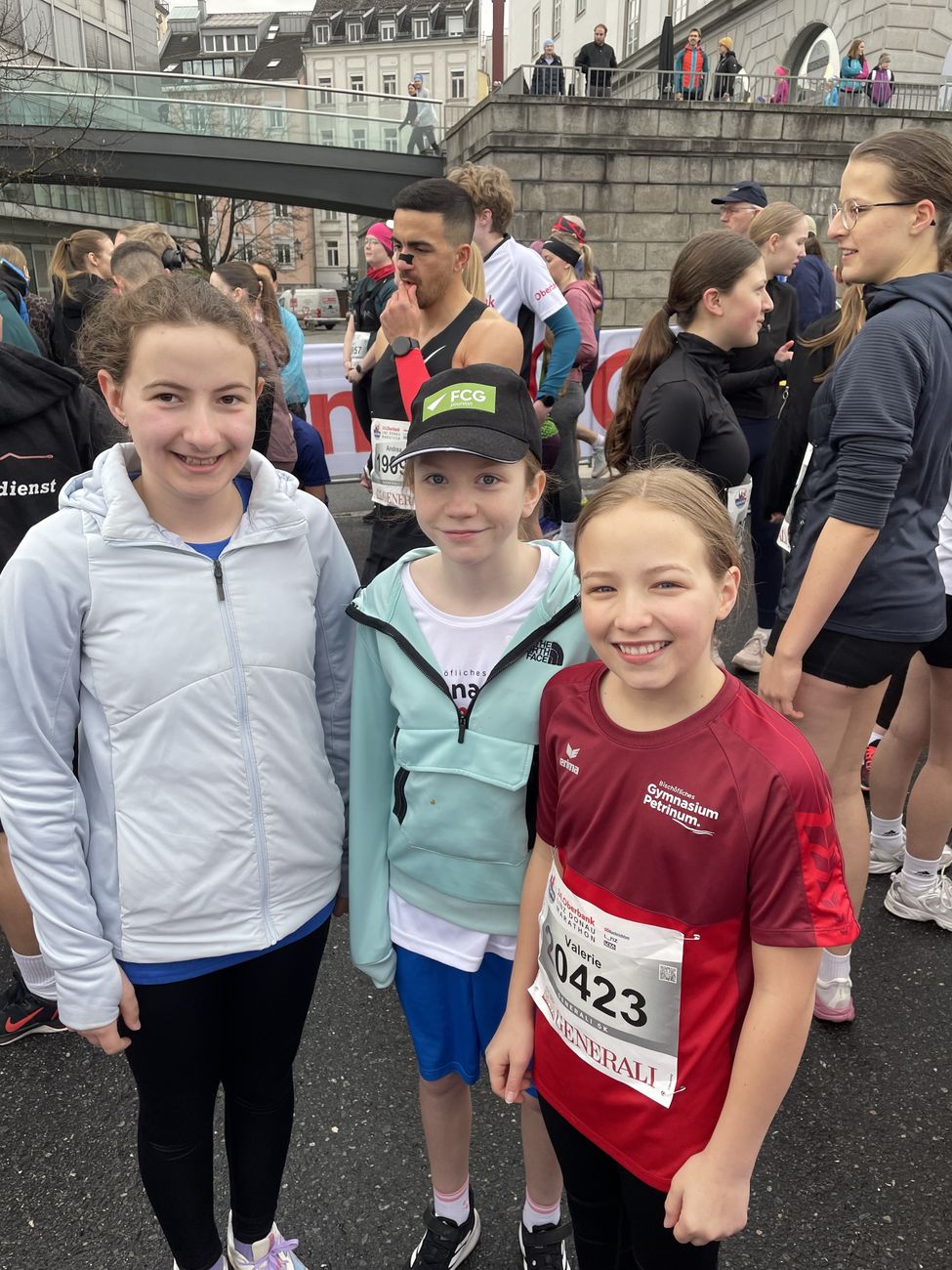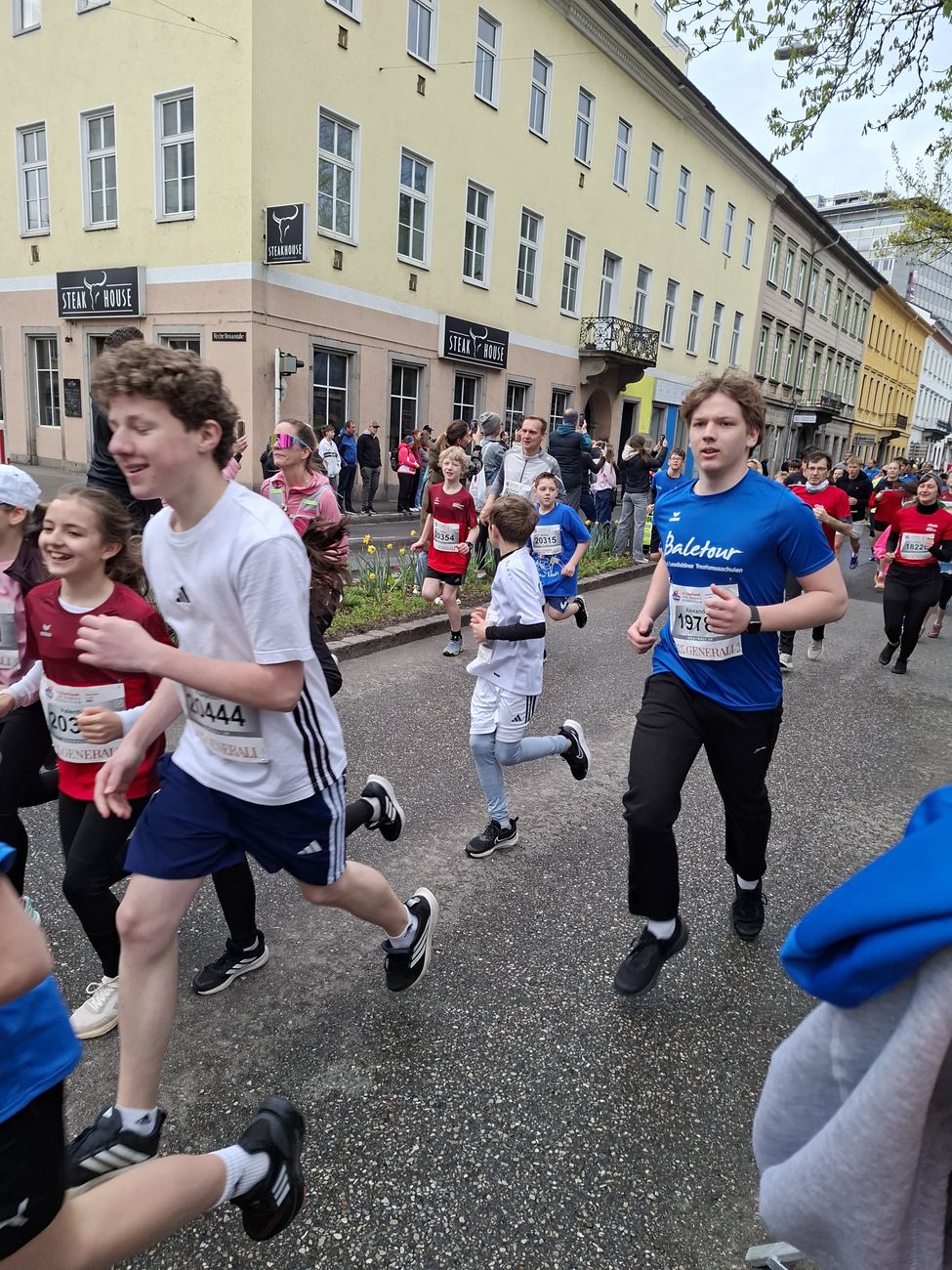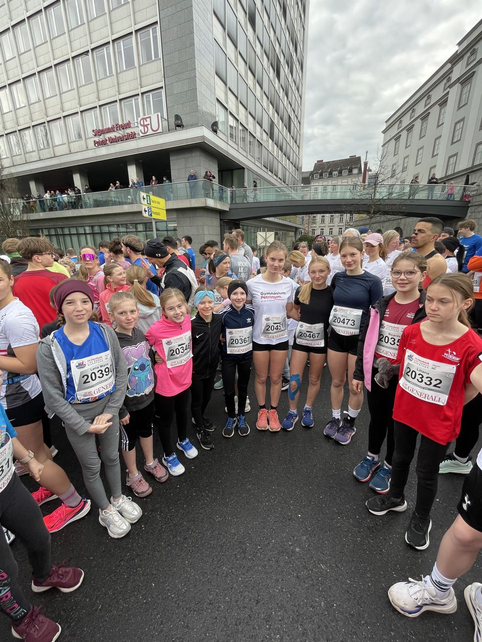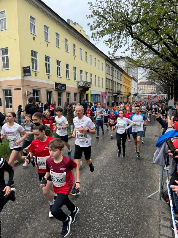 Am Sonntag in der Früh trafen sich schließlich alle zum traditionellen Gruppenfoto, bevor es zum Aufwärmen ging. Der erste Startschuss fiel für die Teilnehmer:innen des Viertelmarathons um 08:30 Uhr auf der Autobahnbrücke. Mitten unter den tausenden Läufer:innen standen 52 Petriner:innen, die diese Strecke in Angriff nahmen. Schnellster war Gabriel Zach mit einer Zeit von 45:34 vor Leonard Ortig und Jonathan Haas. Bei den Mädchen waren Leonie Märzinger (49:27) und Norah Fortner die schnellsten. Auch die Profesoren:innen Anna Leimlehner, Marlene Lengauer, Beatrix Kumar und Simon Lidauer hatten schnelle Beine.