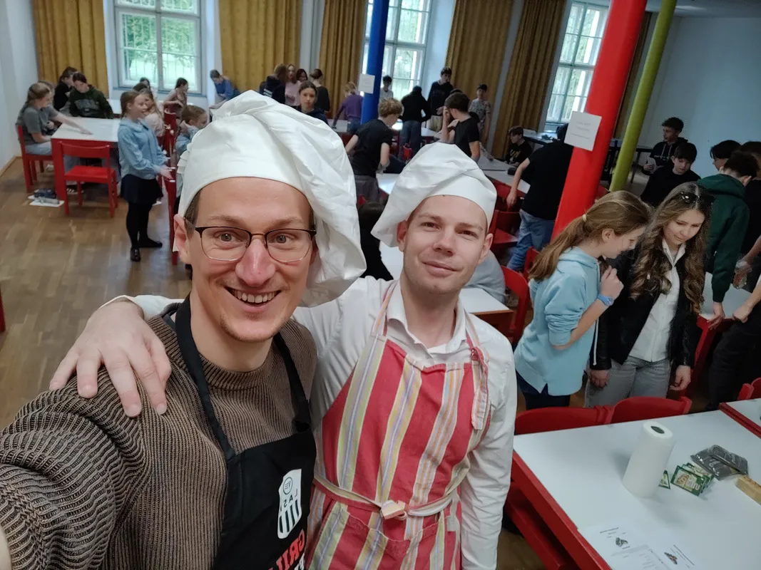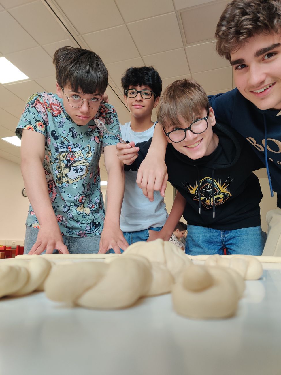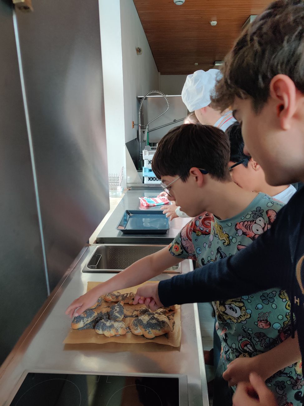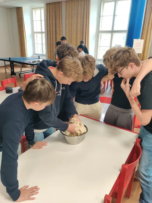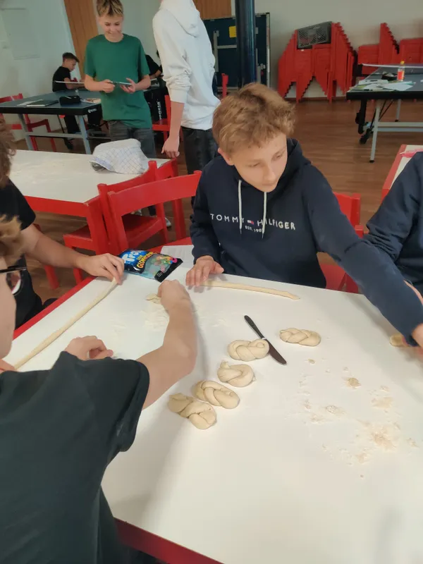 Drei Viertklässler vor dem hell erleuchteten Backofen: „Boah, das wird ja riesig, Digger. Schau wie geil das aufgeht!“ Nachsatz, als ein Lehrer dazutritt: „Äh, schau wie schön der Teig sich, äh aufbaut. Was diese Hefe alles kann.“