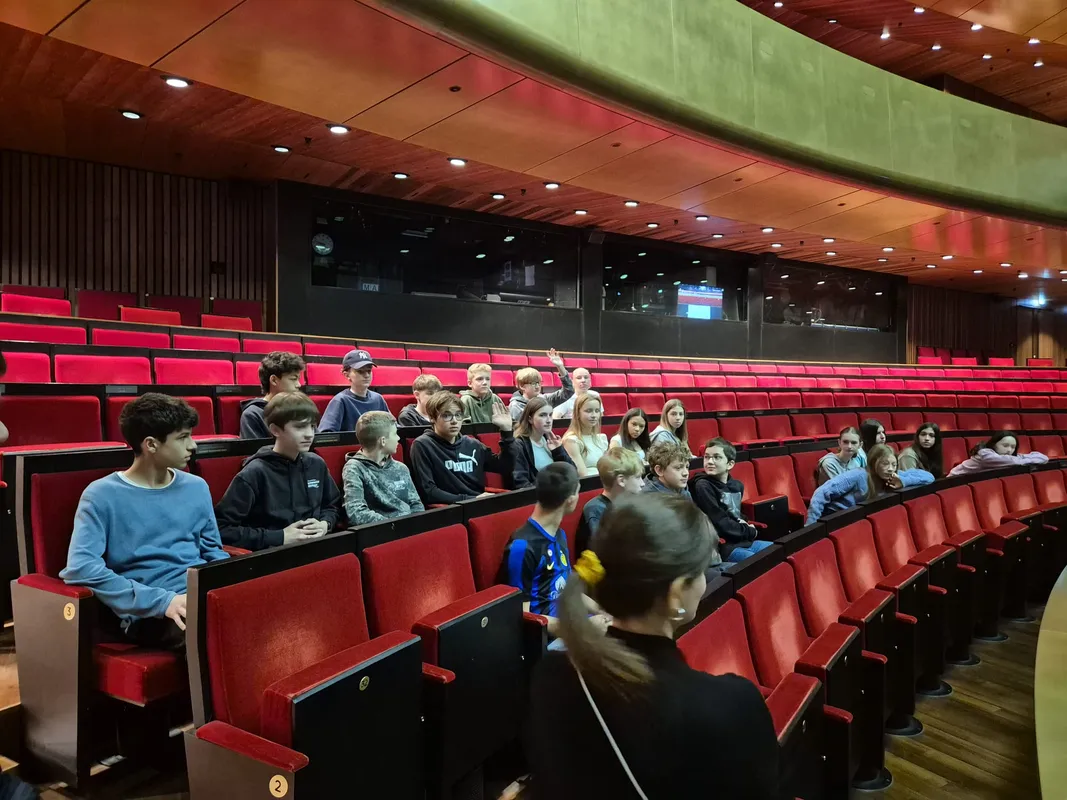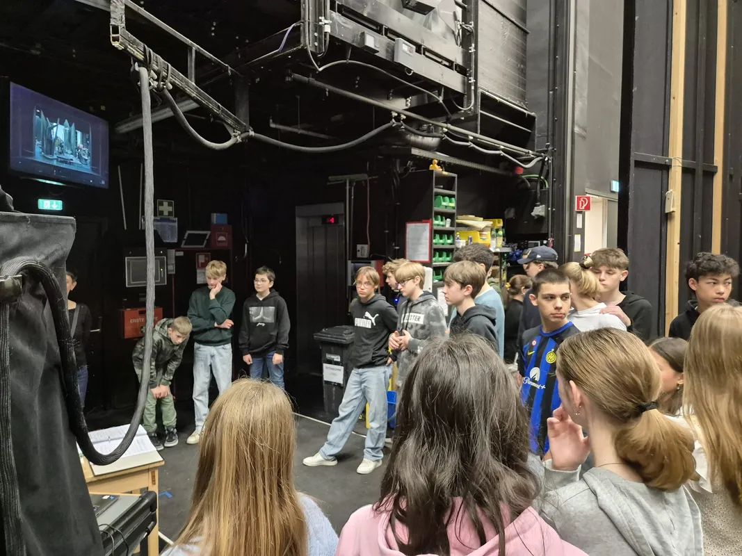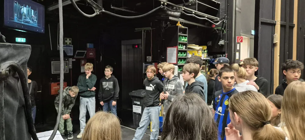 Auch auf der Bühne wurde es spannend, die Schüler*innen konnten mit dem Inspizienten sprechen, erhielten Informationen über die Bühnen- und Beleuchtungstechnik und konnten am Ende noch bei einer Bühnenorchesterprobe zuhören.