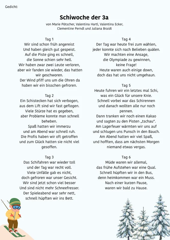 Vom 18. bis 23. Jänner machten sich 90 Kinder auf die aktuell herausfordernde Suche nach dem Schnee – mit Erfolg! Beim diesjährigen Schikurs der 3. Klassen in Obertauern waren die Bedingungen perfekt – traumhafte Pisten und Sonnenschein (siehe Beweisfotos unterhalb ).