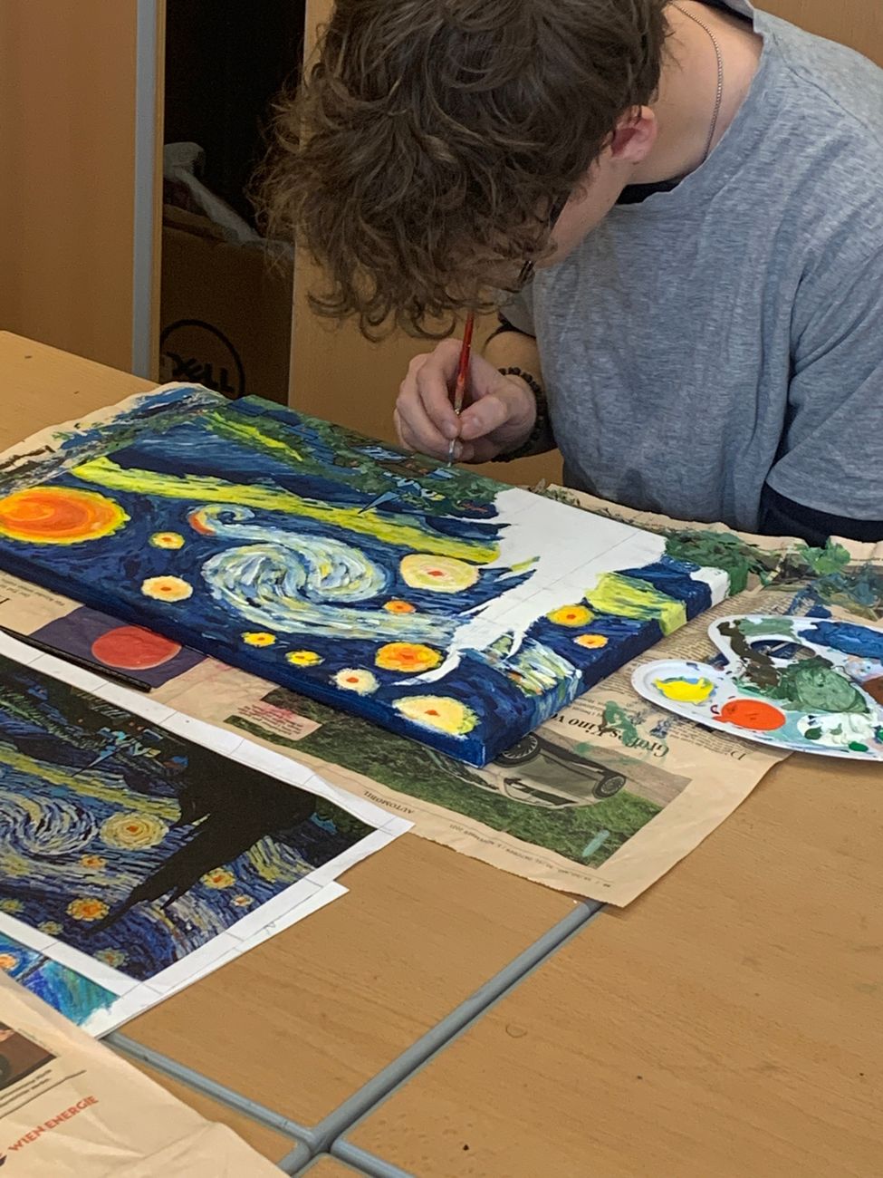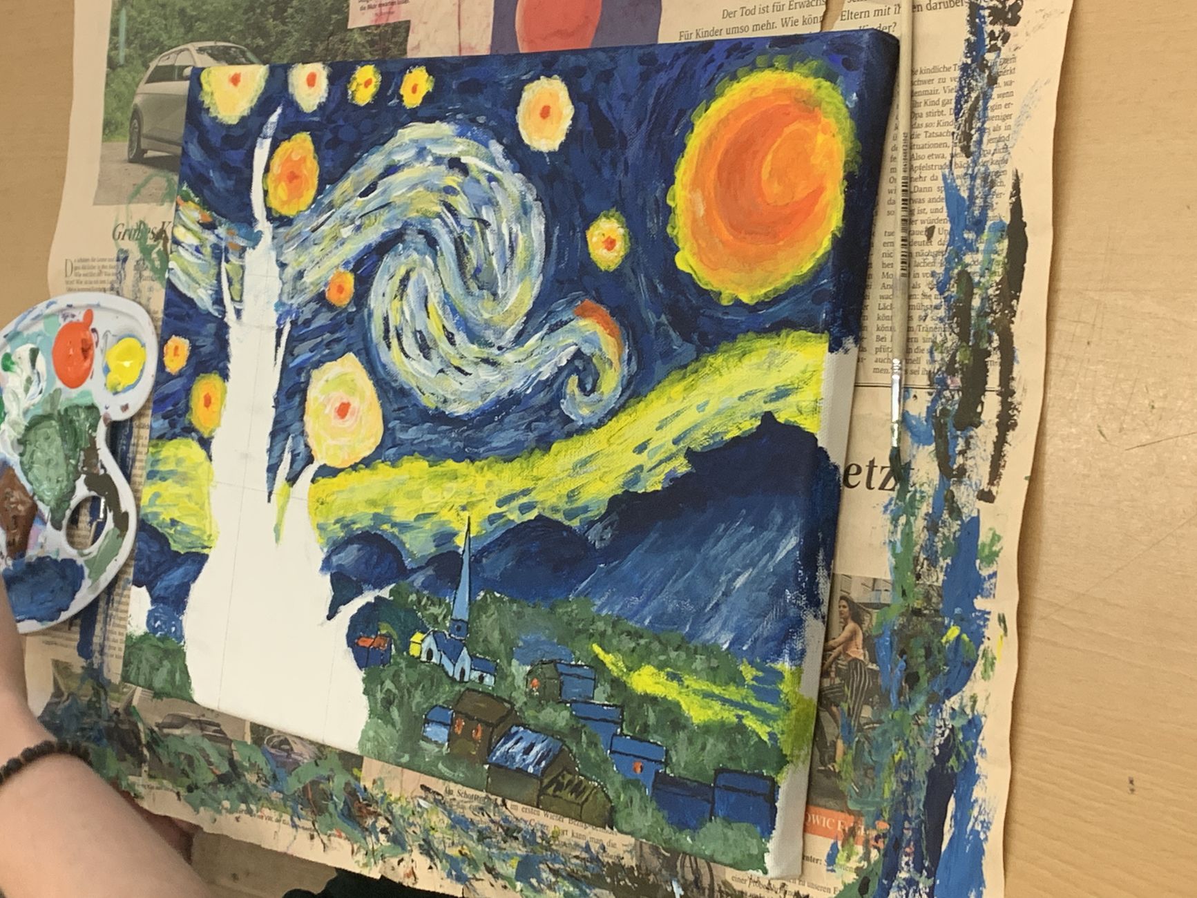 Die Schüler*innen der 7a Klasse beschäftigten sich im Sommersemester mit verschiedenen Künstler*innen. Nach der Auswahl eines bedeutenden Kunstwerks wurden Kompositionsstudien, Farbstudien und zuletzt eine Kopie in Acryl erstellt. Konzentriertes Arbeiten und genaues Schauen waren für diese Aufgabe ebenso notwendig, wie Farbgefühl und Kenntnisse rund um die Arbeit mit Acrylfarben.